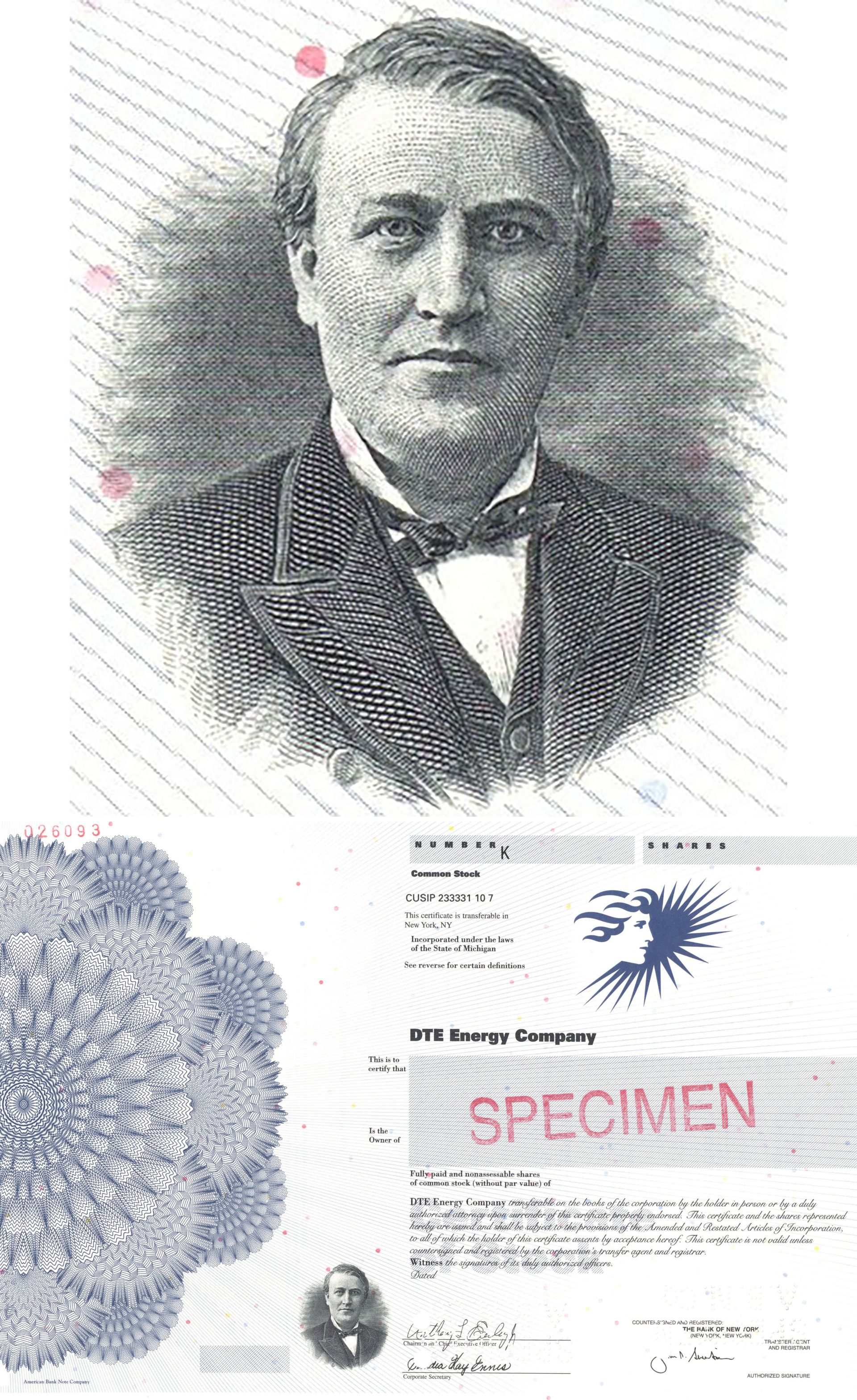 DTE Energy Co. - Vignette of Thomas Alva Edison - Beautiful Specimen Stock Certificate