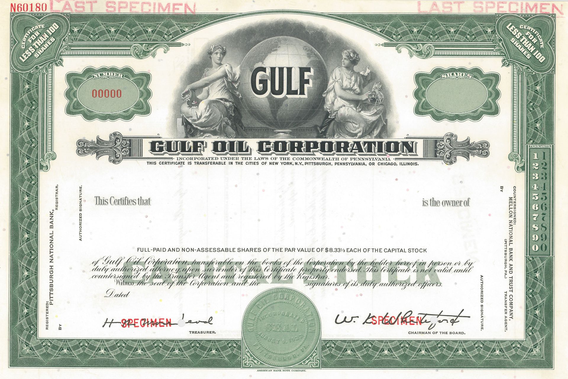 Gulf Oil Corporation - circa 1970's Specimen Stock Certificate