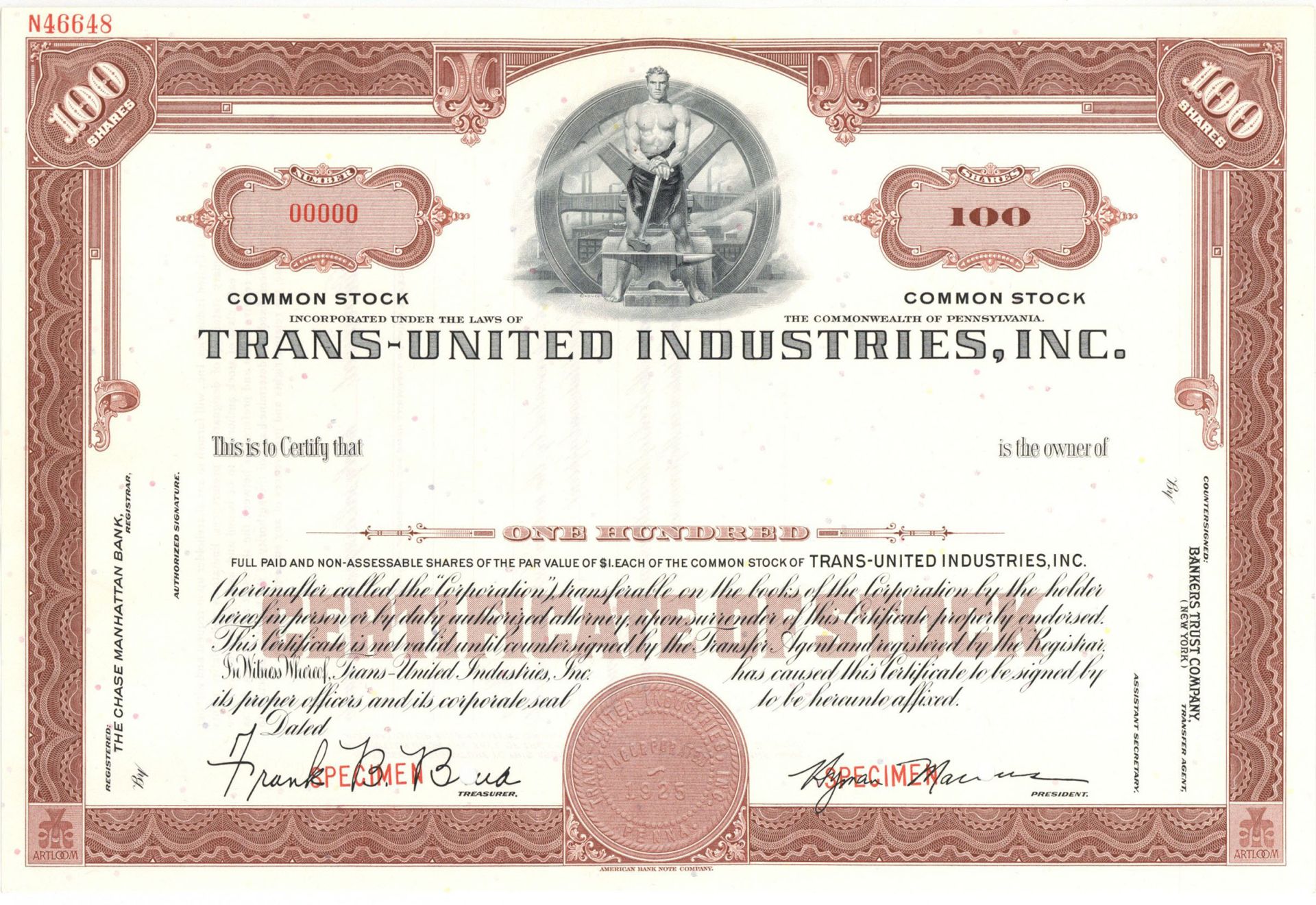 Trans-United Industries, Inc. - Specimen Stock Certificate - Previously known as Artloom Industries, Inc.