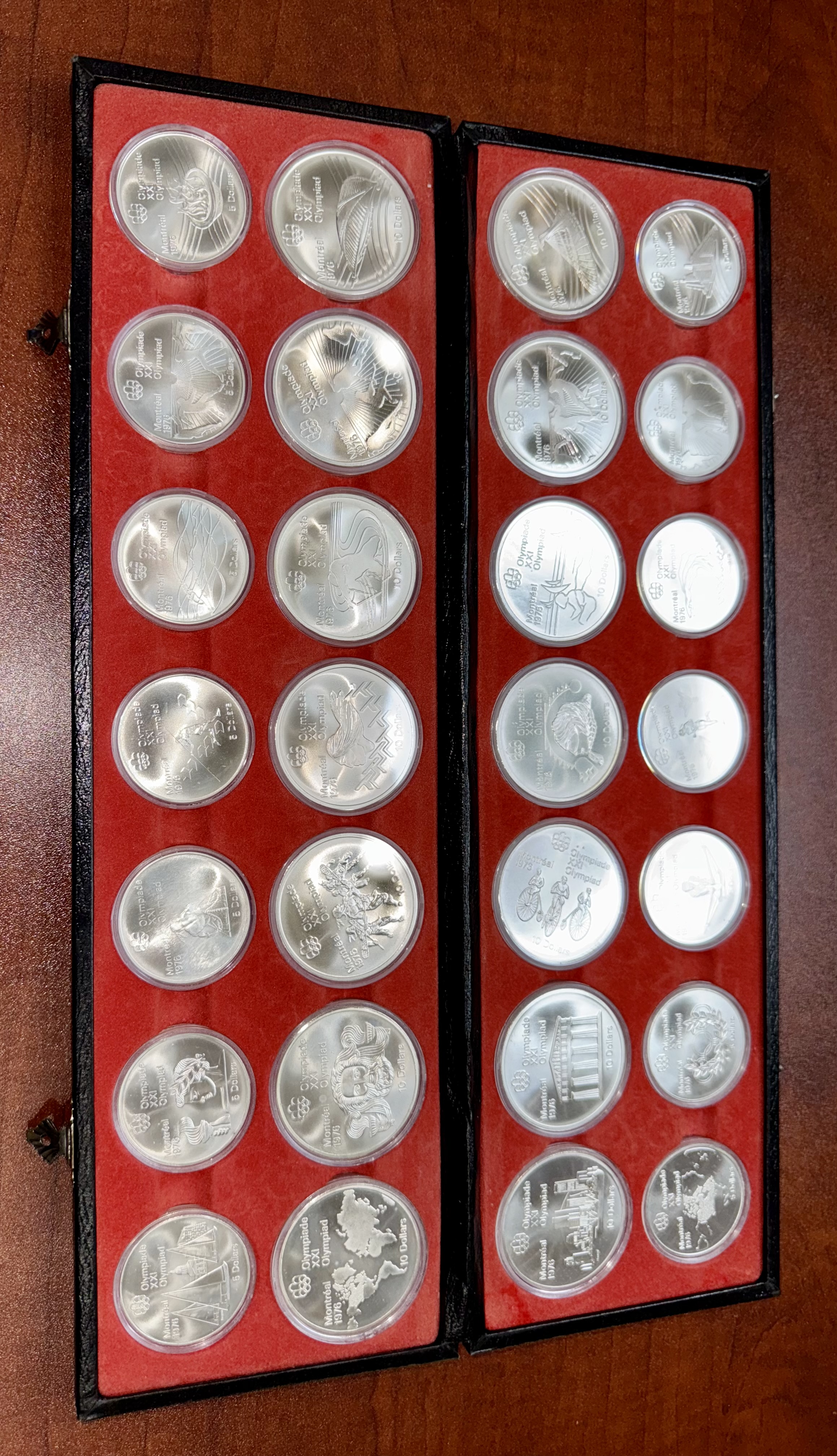 Inv# CI1002Silver Complete 28-Coin 1976 Montreal Summer Olympics Sterling Silver Set.