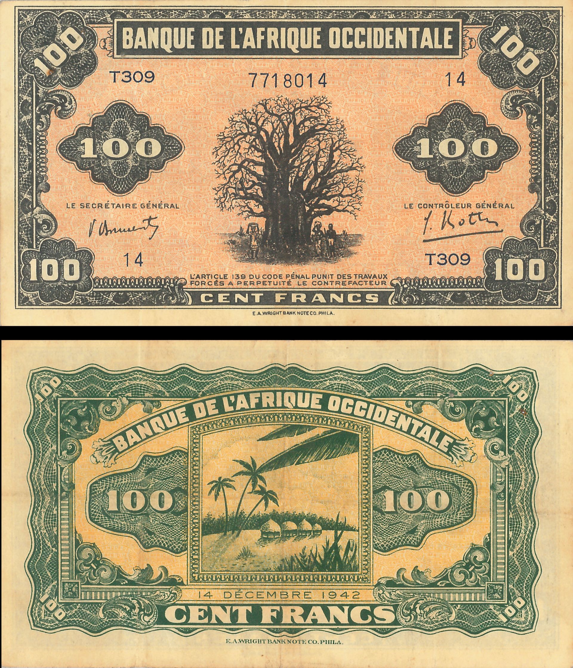 French West Africa - 100 Francs - P-31a - dated 1942-43 Foreign Paper Money