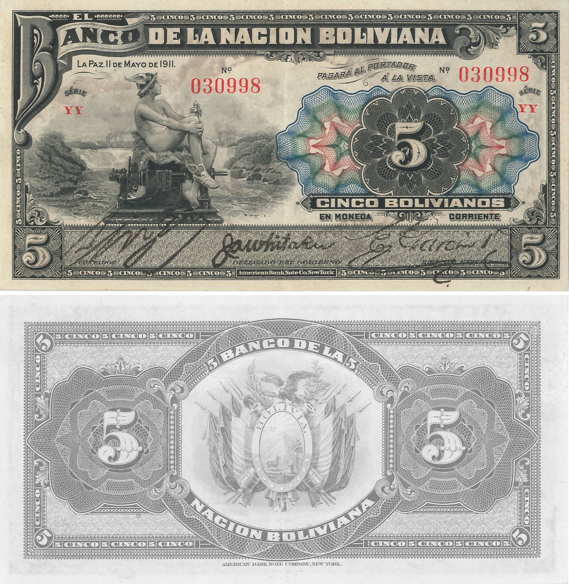Bolivia - 5 Bolivianos - P-105b - 11.5.1911 dated Foreign Paper Money