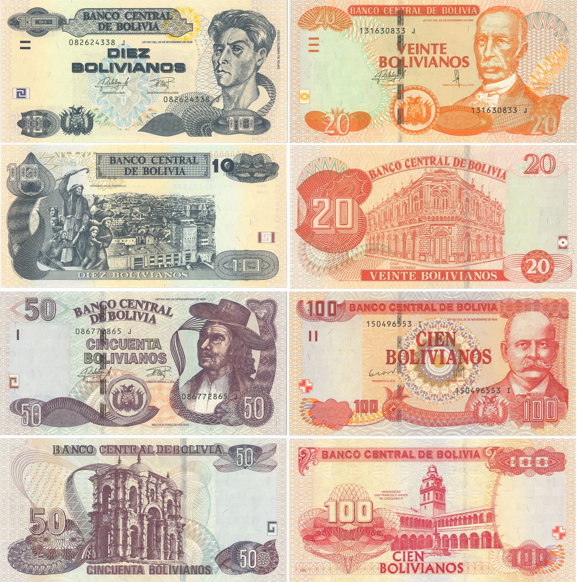 Set of 4. 10, 20, 50 and 100 Bolivianos, P-New. Series I-J.