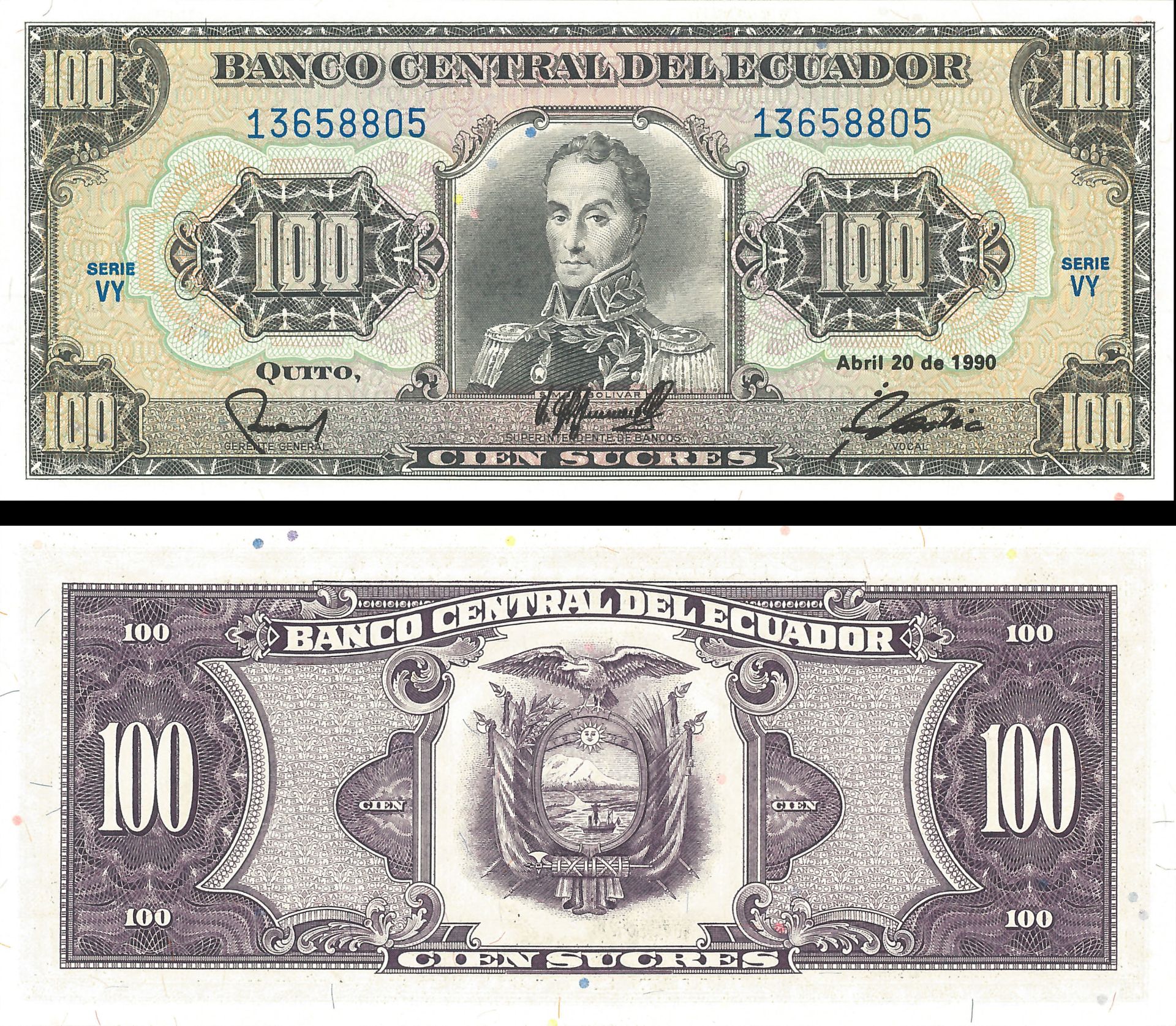Ecuador - 100 Sucres - P-123 - 1990 dated Foreign Paper Money