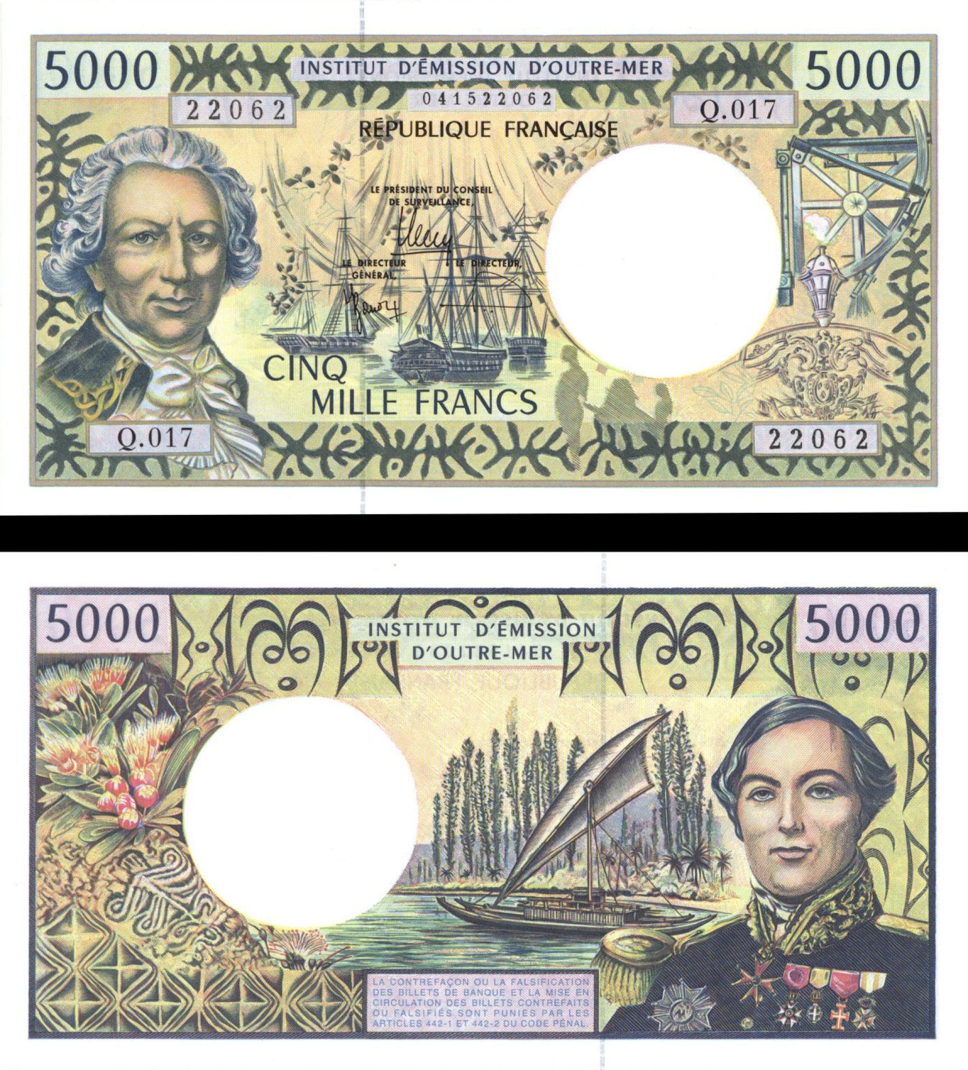 French Pacific - P-3i - 5, 000 Francs - dated 1996 Foreign Paper Money