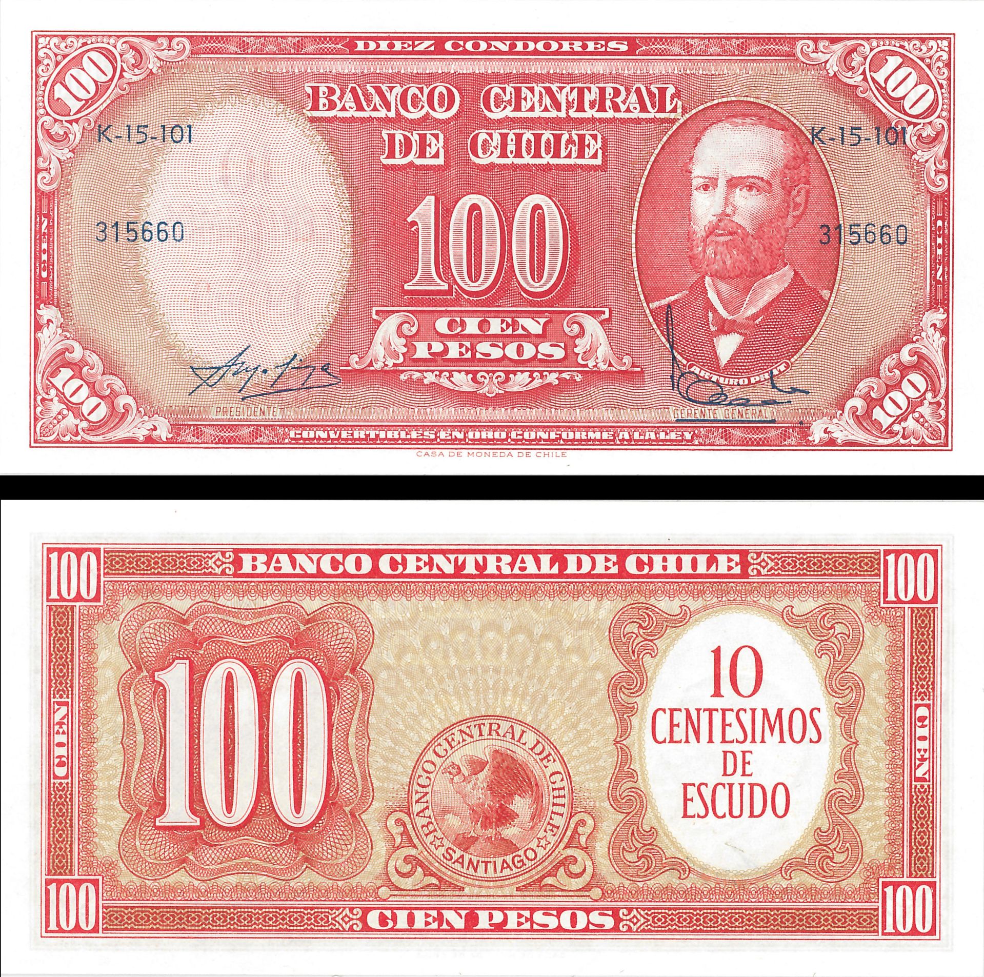 Chile - 100 Pesos - P-127a - 1960-61 dated Foreign Paper Money