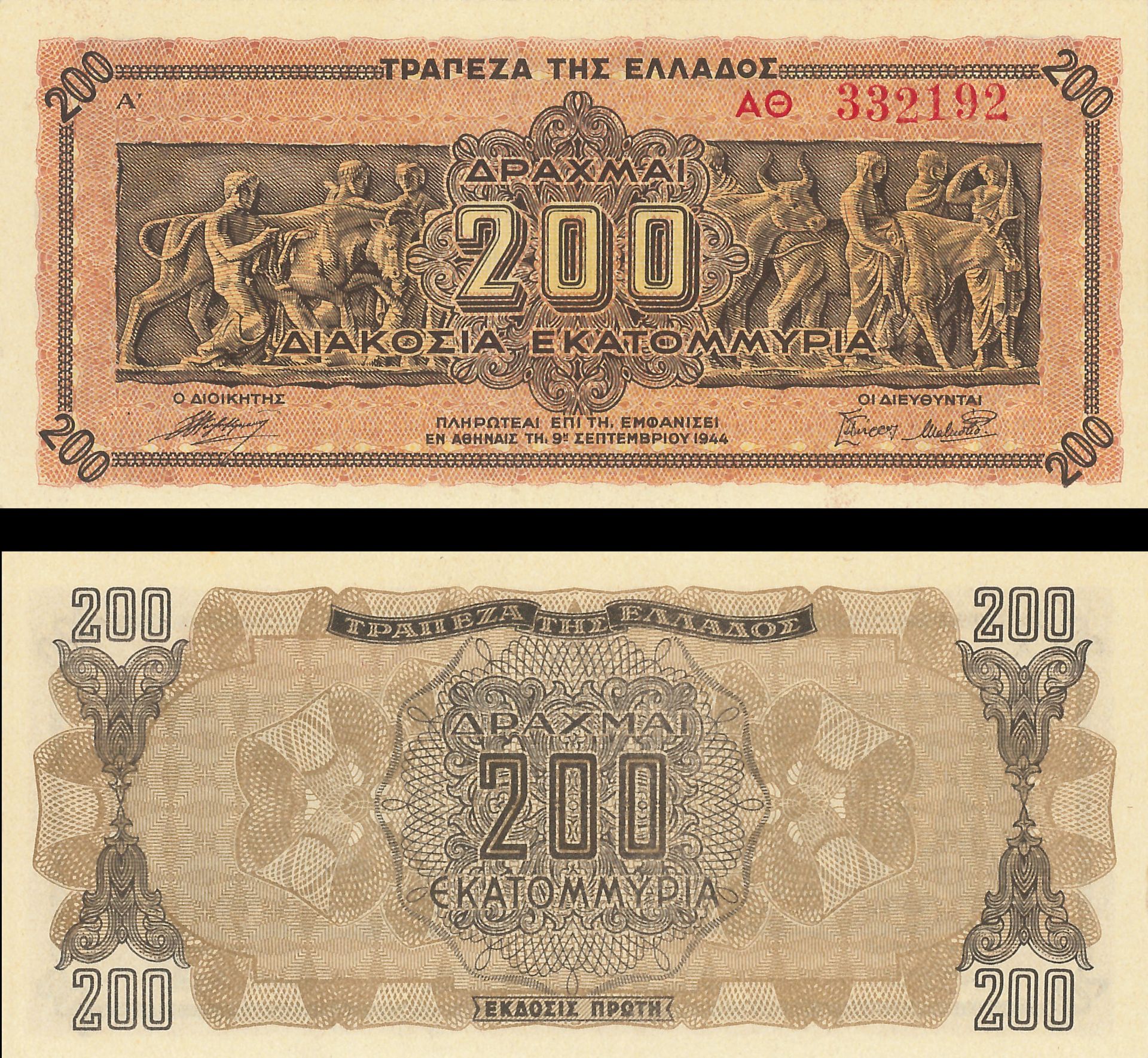 Greece - 200,000,000 Greek Drachmai - P-131a - 1944 dated Foreign Paper Money