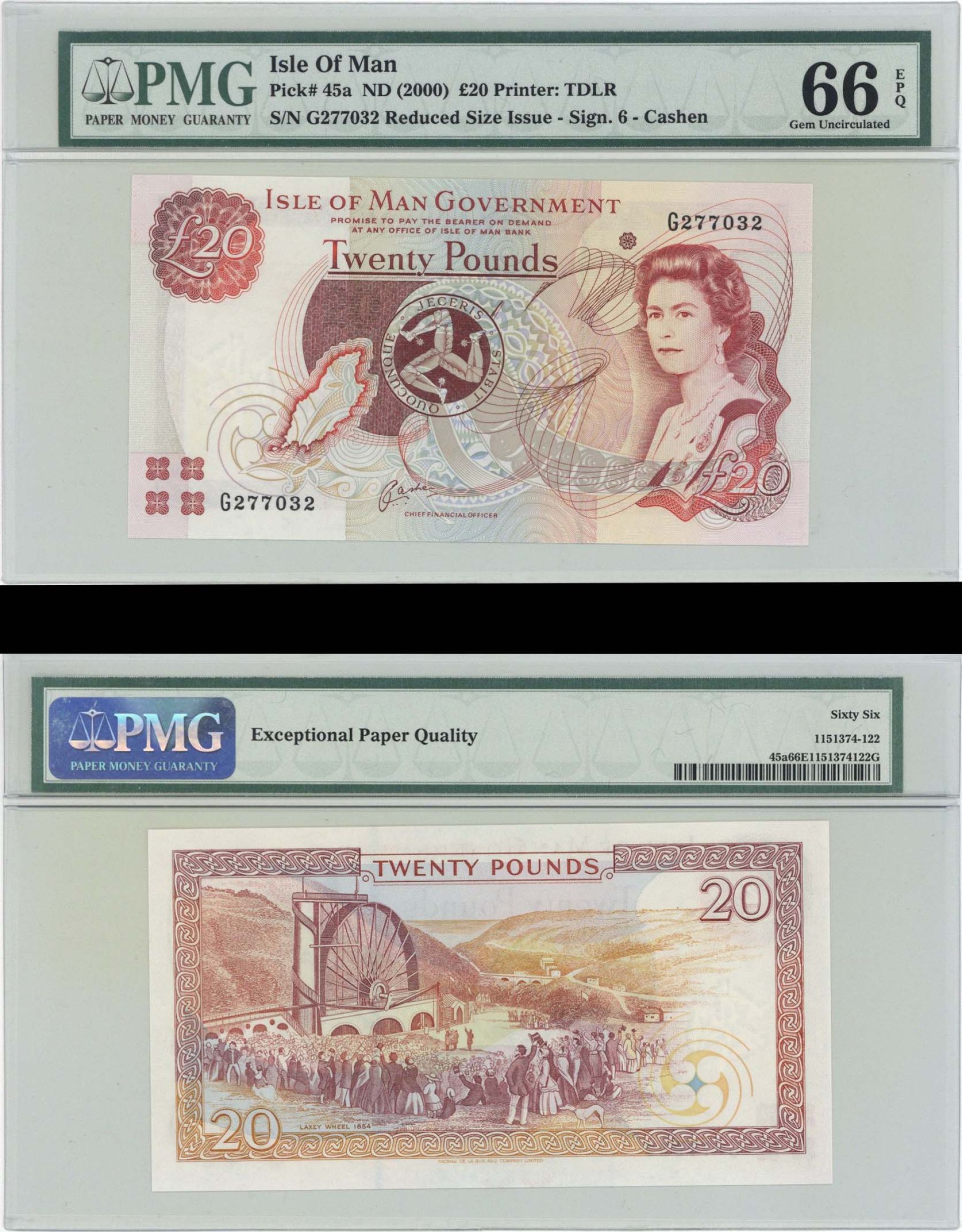 Isle of Man - 20 Pounds - P-45a - PMG66 Graded ND(2000) dated Foreign Paper Money