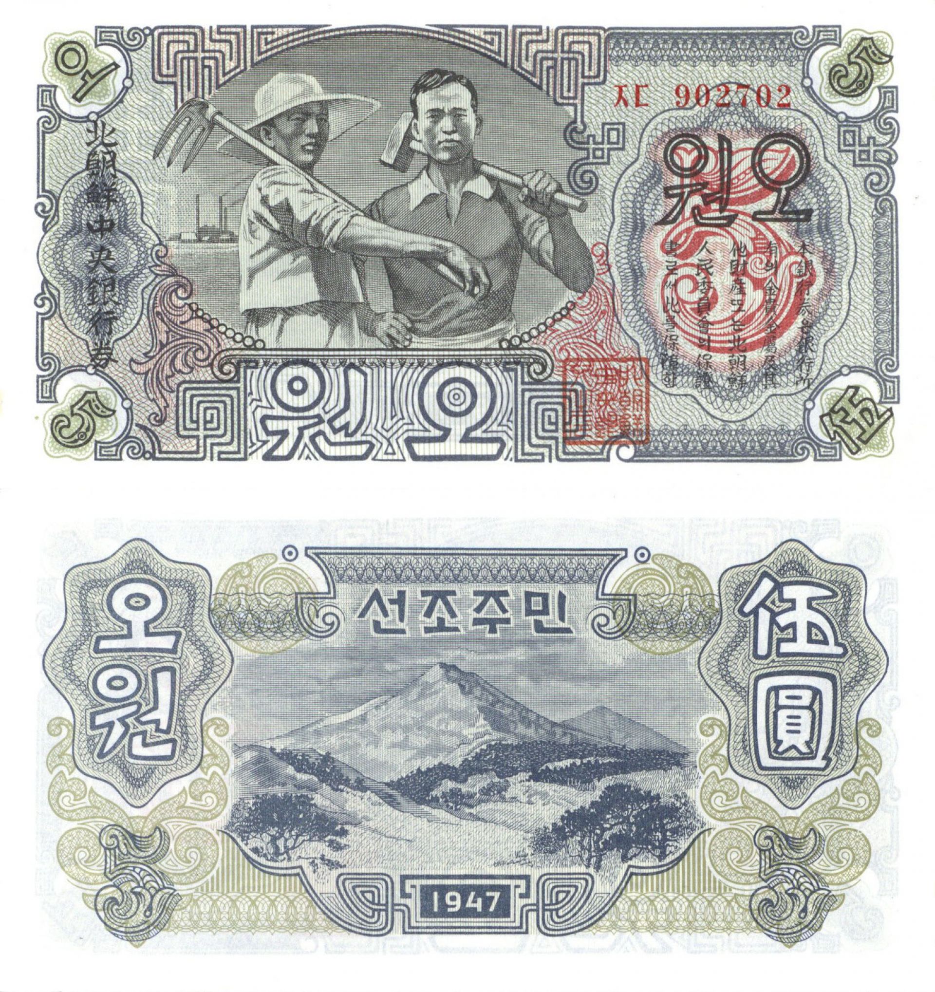 North Korea - 5 Won - P-10b - 1947 dated Foreign Paper Money
