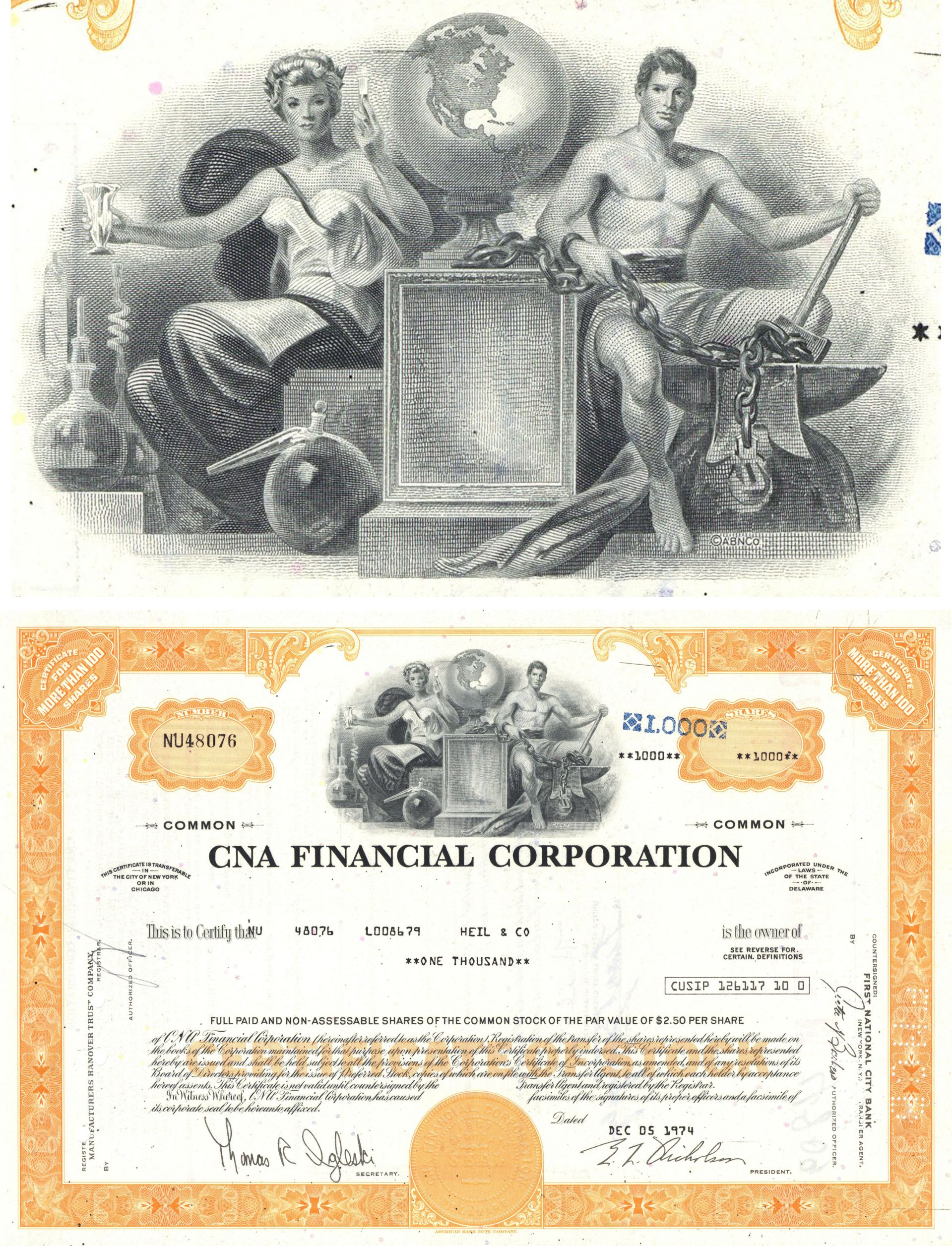 CNA Financial Corporation - 1970's dated Stock Certificate - Insurance Company