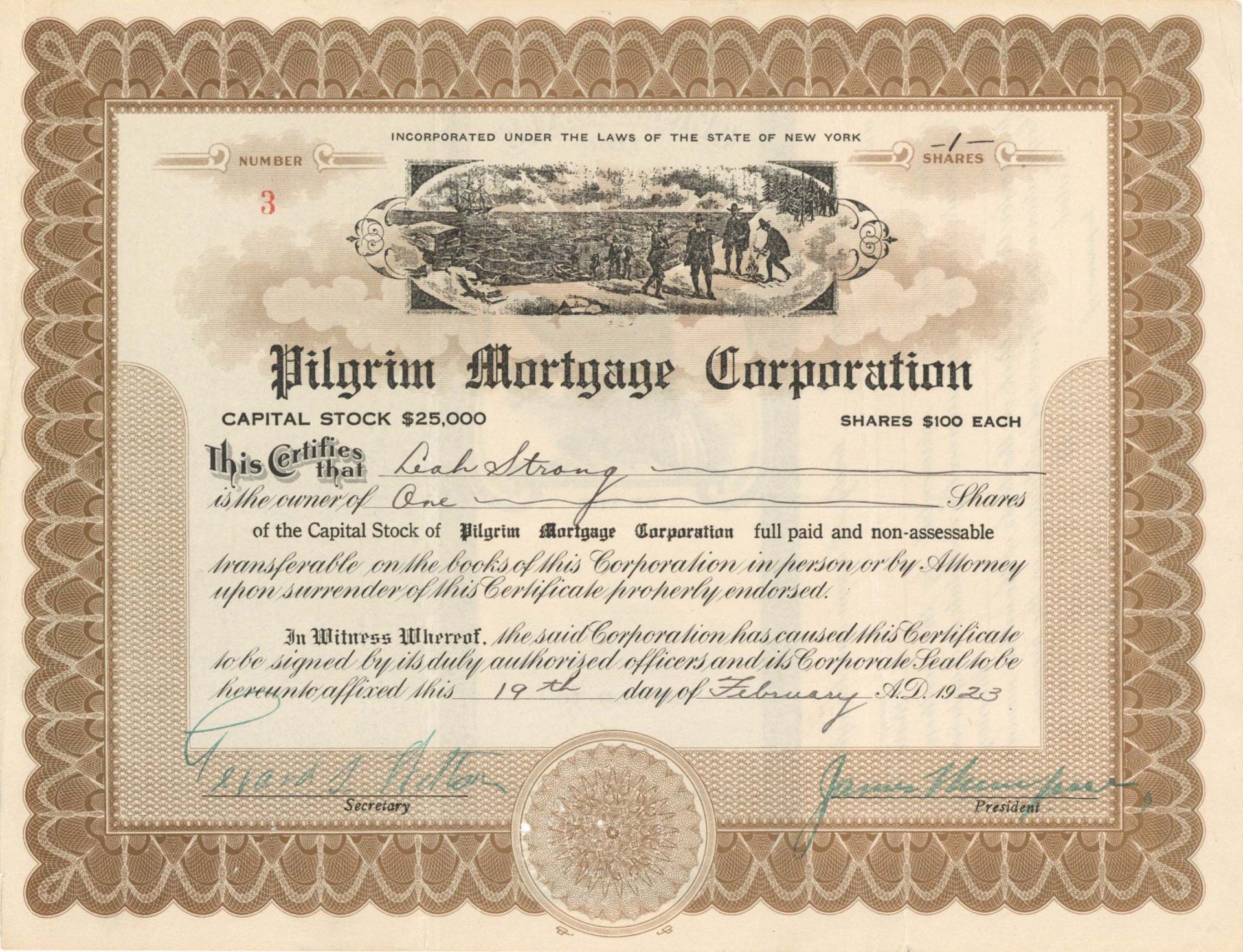 Pilgrim Mortgage Corp. - 1923 dated Stock Certificate