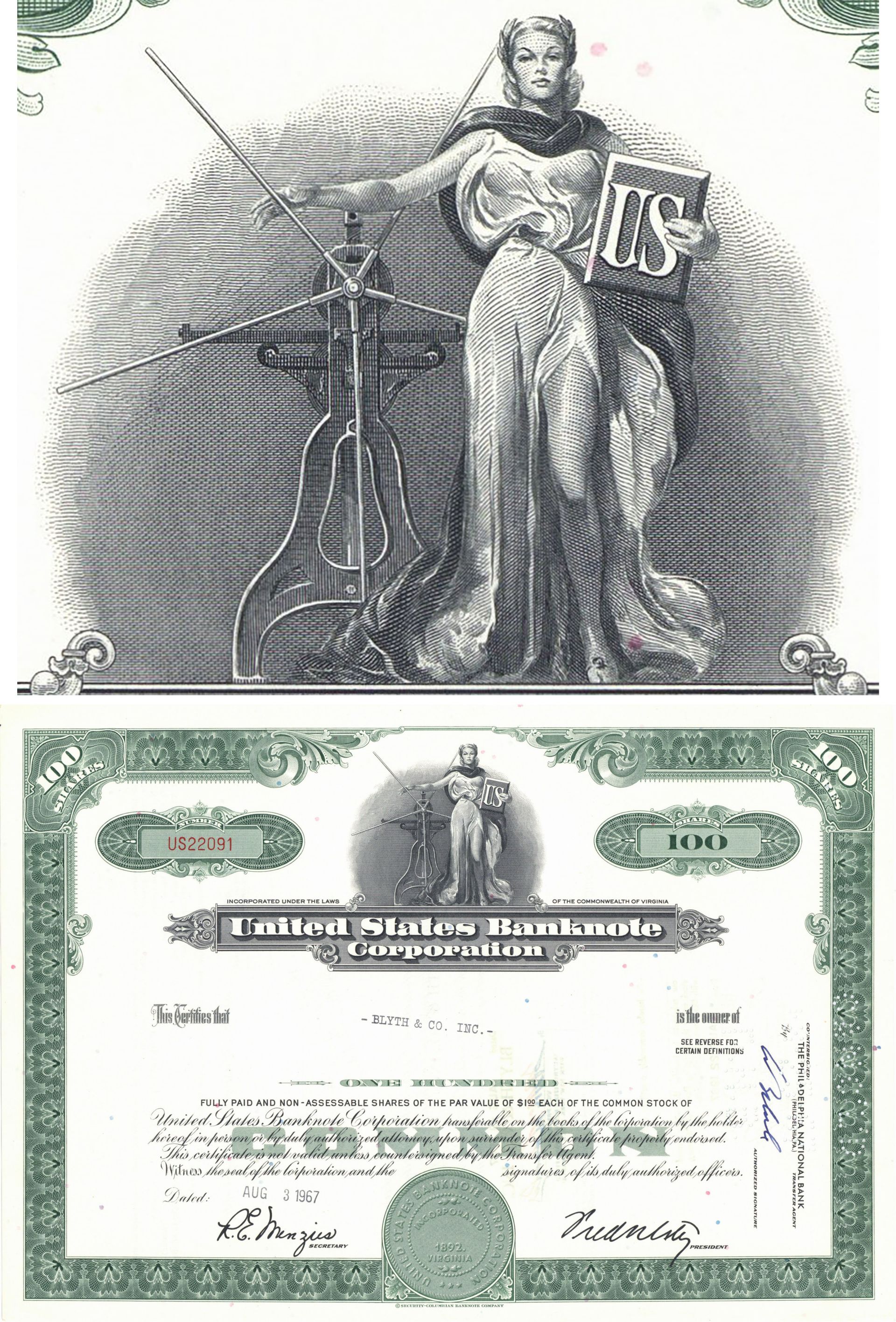 United States Banknote Corp. - 1960's-70's dated Printing Company Stock Certificate