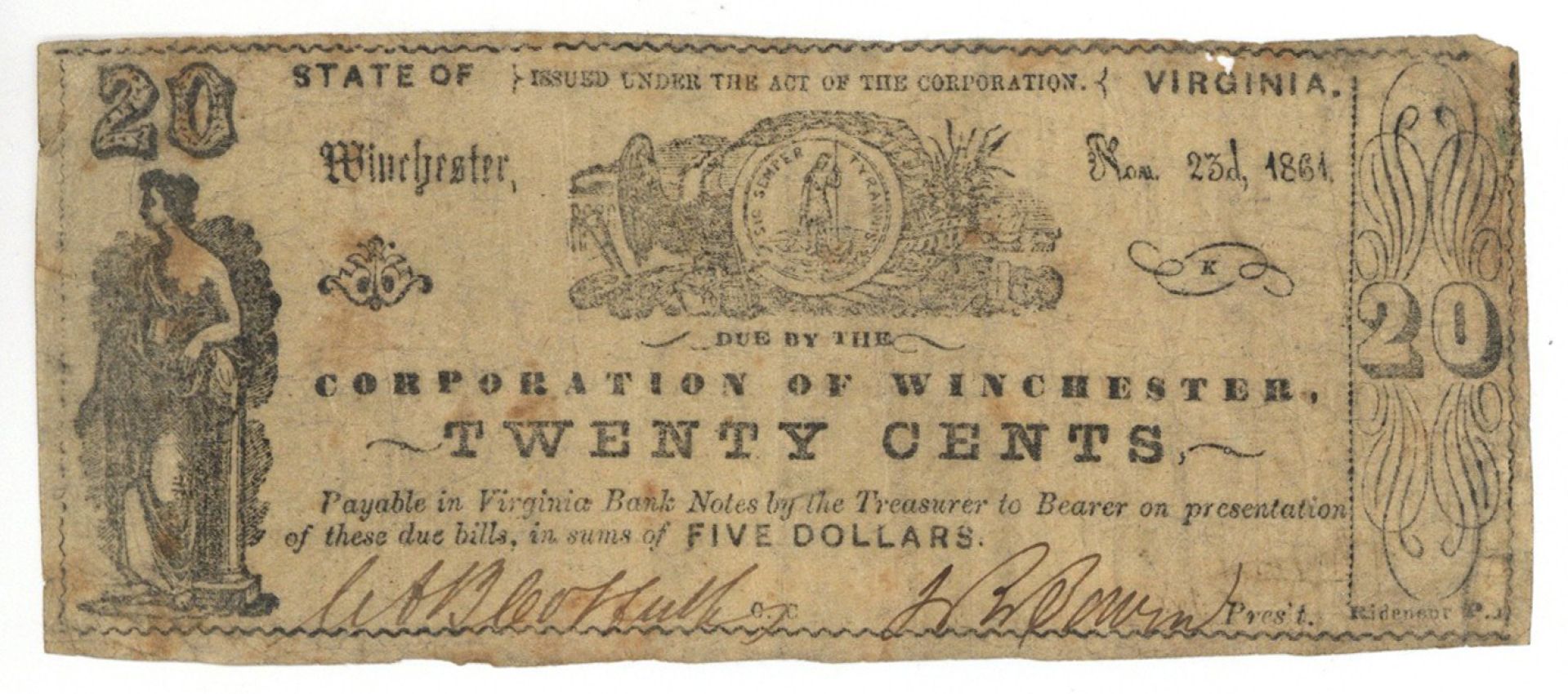 Corporation of Winchester - 20 cents Obsolete or Broken Banknote - Paper Money