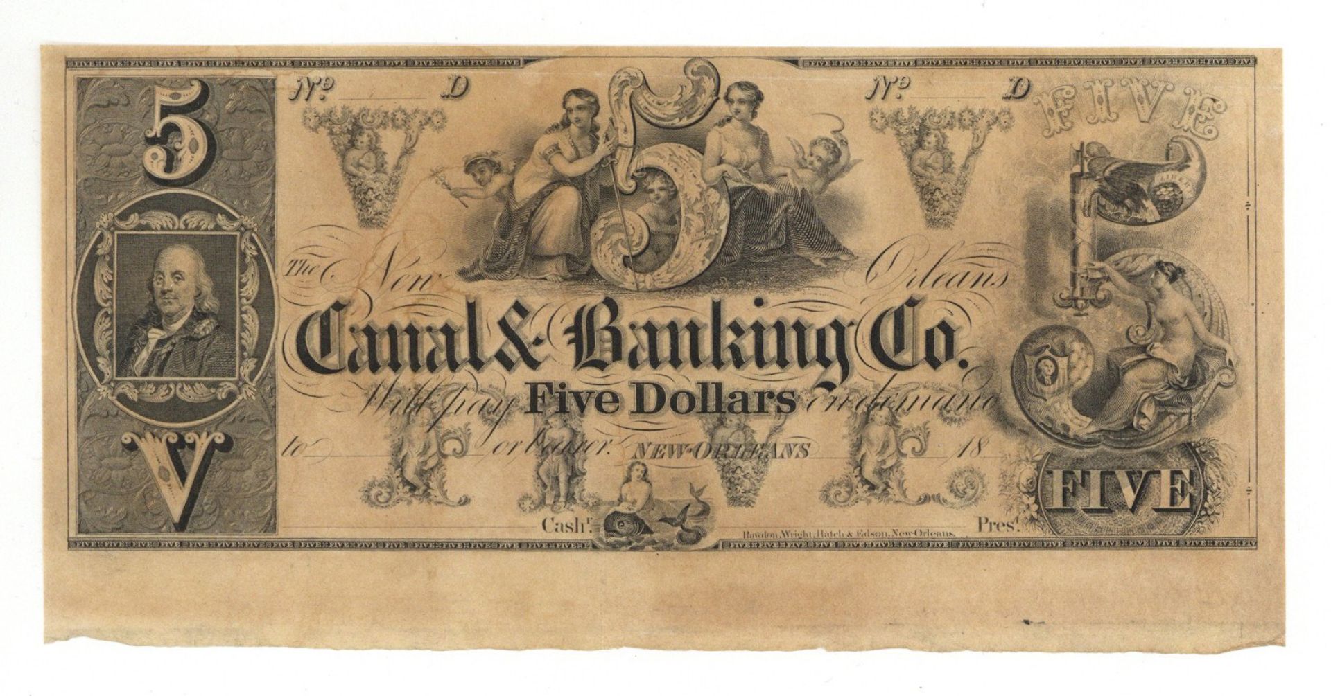 New Orleans Canal and Banking Co. $5 - Broken Bank Note Remainder - Obsolete Banknote