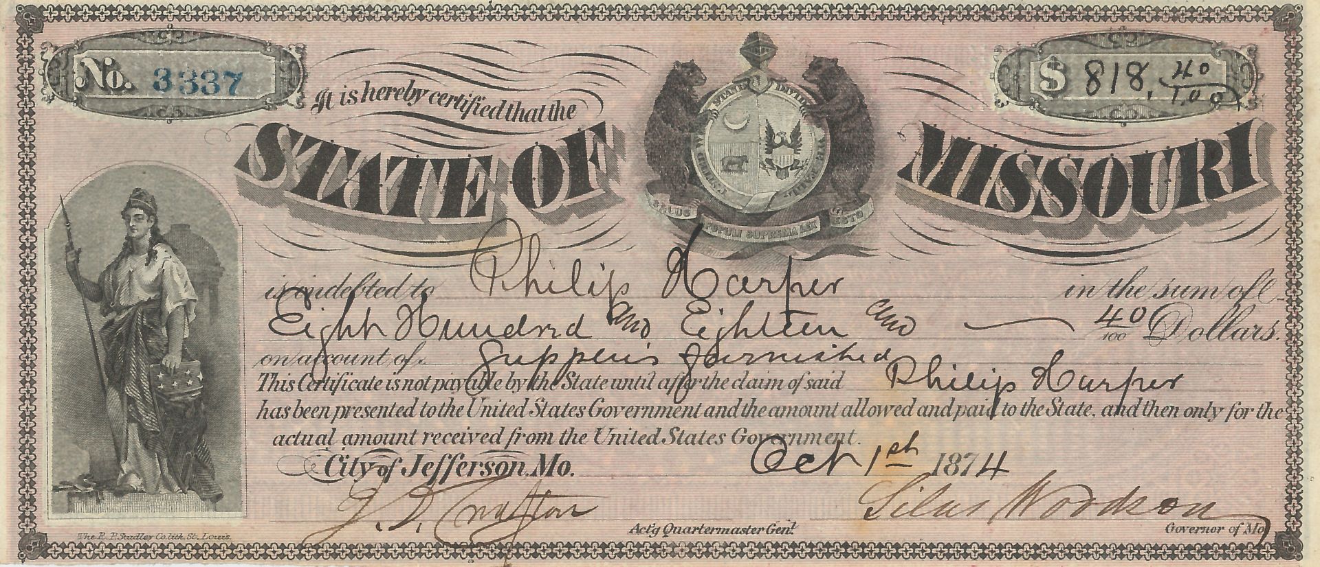 1874 dated Missouri Promissory Note signed by Governor Silas Woodson - State of Missouri