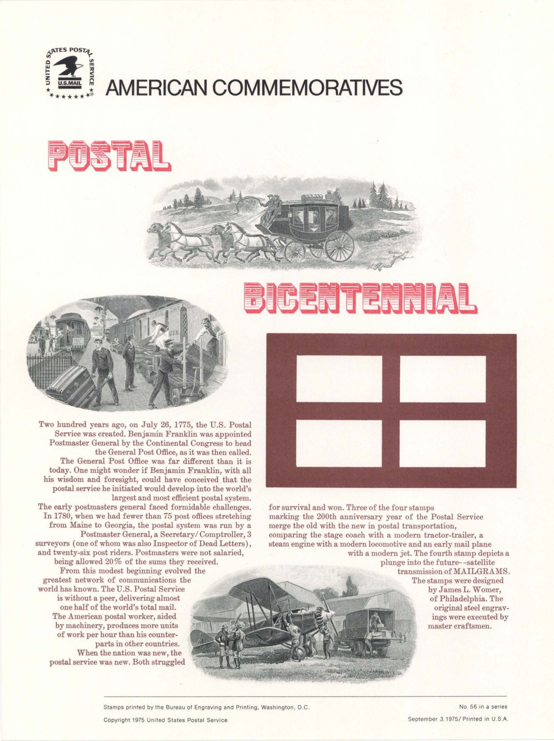 American Bank Note Company American Commemoratives for Postal Bicentennial - 1975 dated