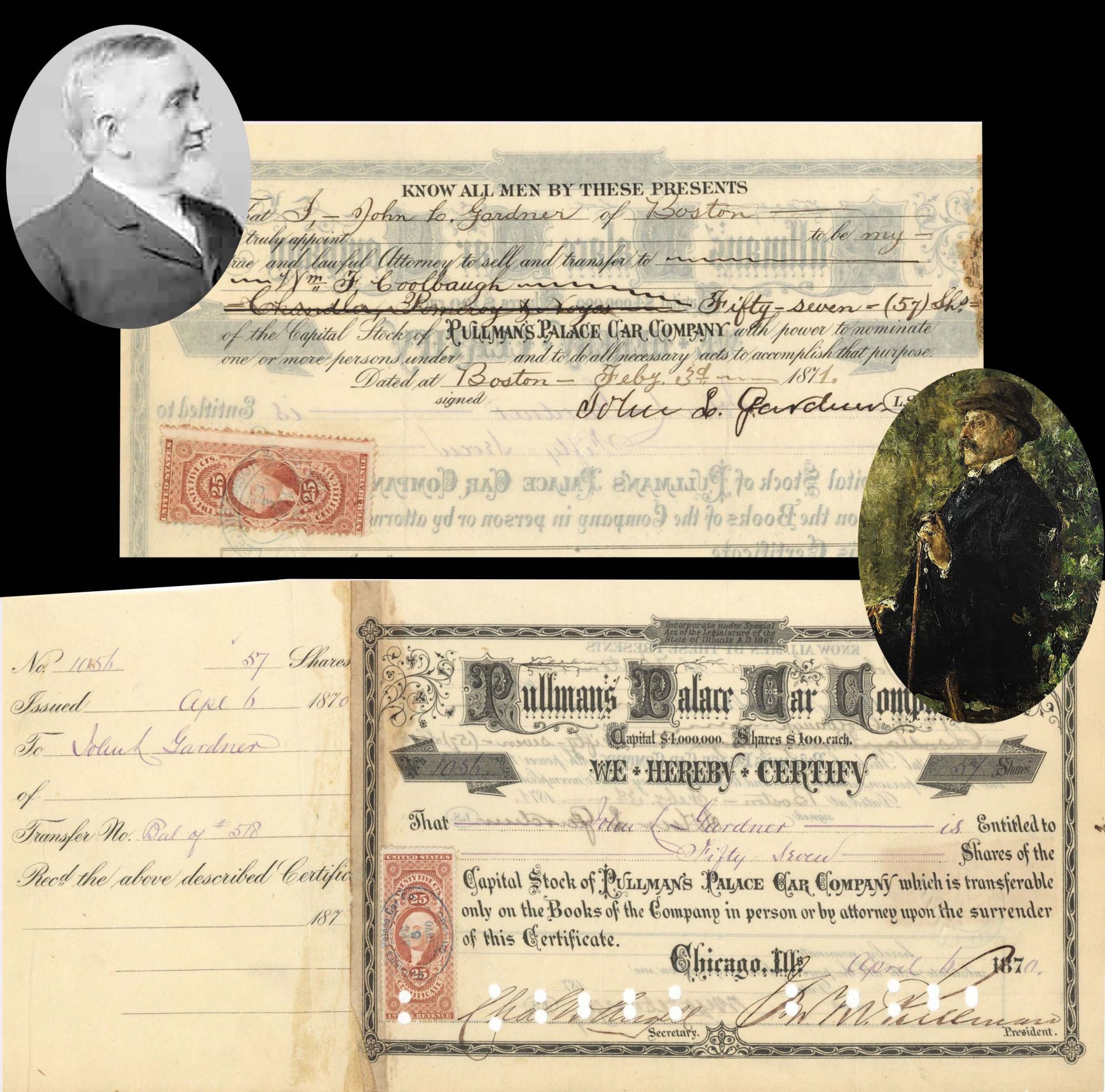 Pullman's Palace Car Co. signed by Geo. M. Pullman and John L. Gardner - 1870 dated Autographed Stock Certificate