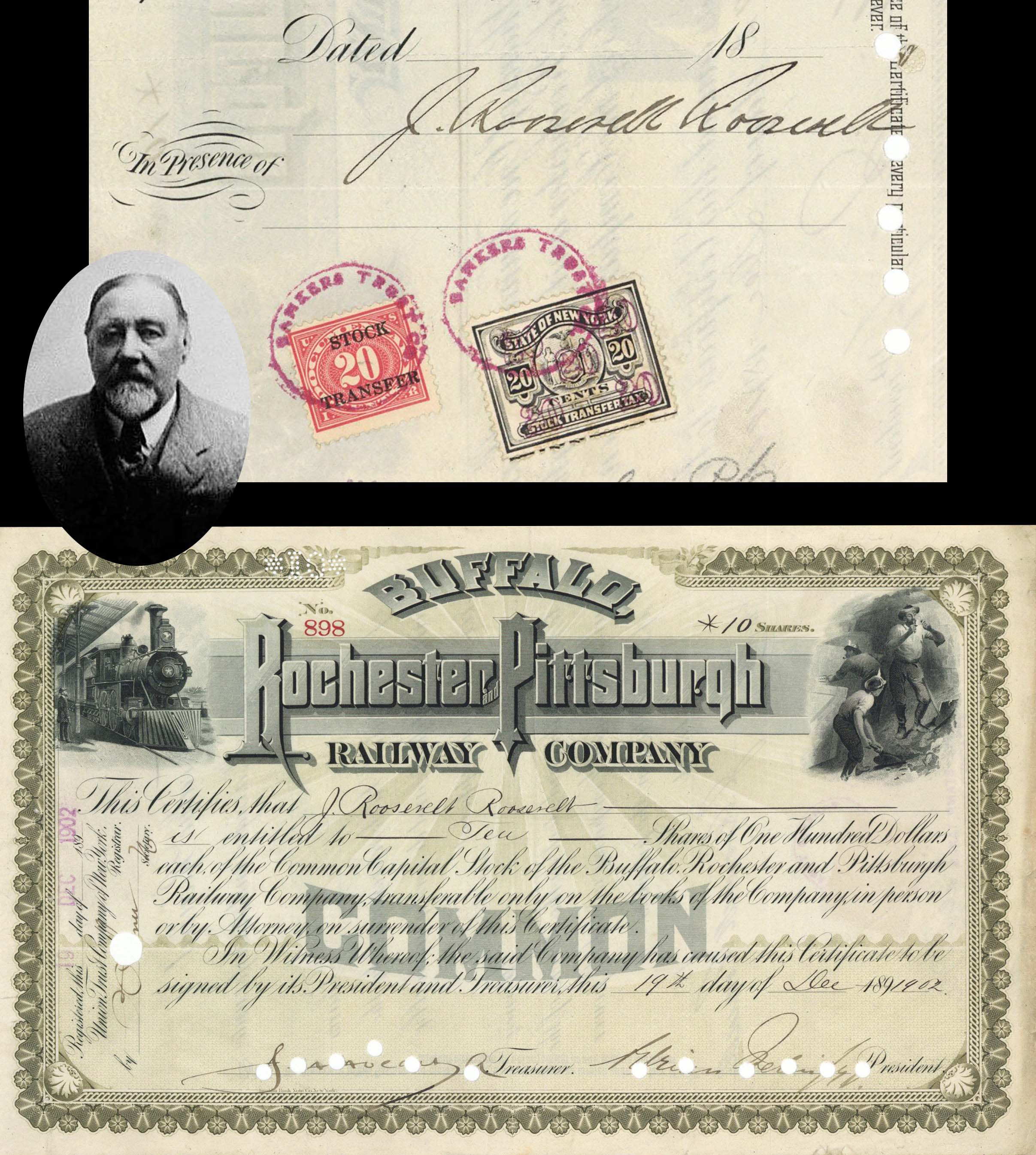 Buffalo, Rochester and Pittsburgh Railway Co. signed by James Roosevelt - 1902 dated Autographed Stock Certificate