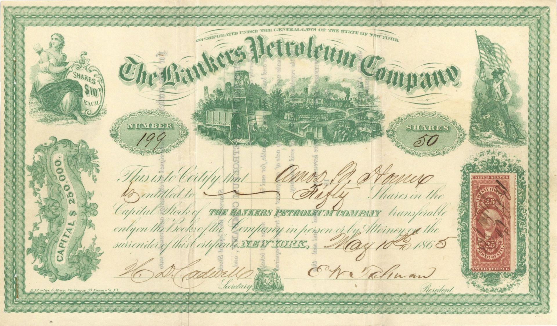 Bankers Petroleum Co. - 1865 dated New York Oil Stock Certificate (Uncanceled)