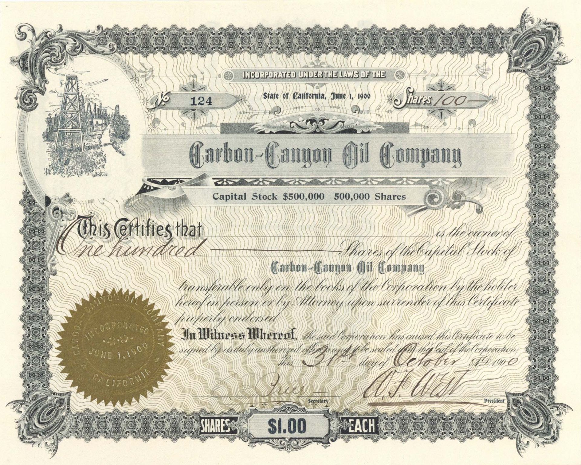 Carbon-Canyon Oil Co. - 1900 dated Stock Certificate