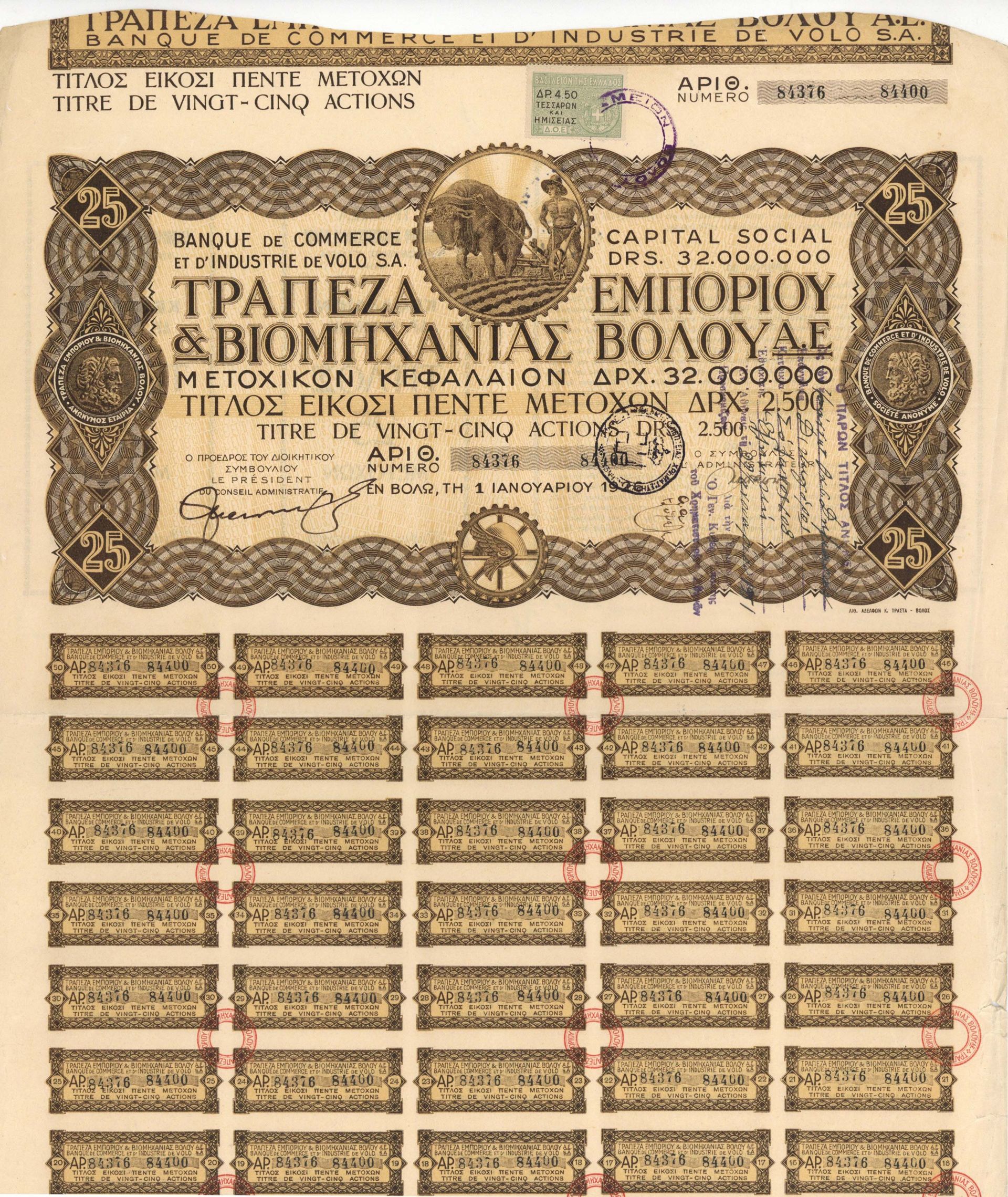 Banking Stock with oxen vignette, coupons and elaborate border!