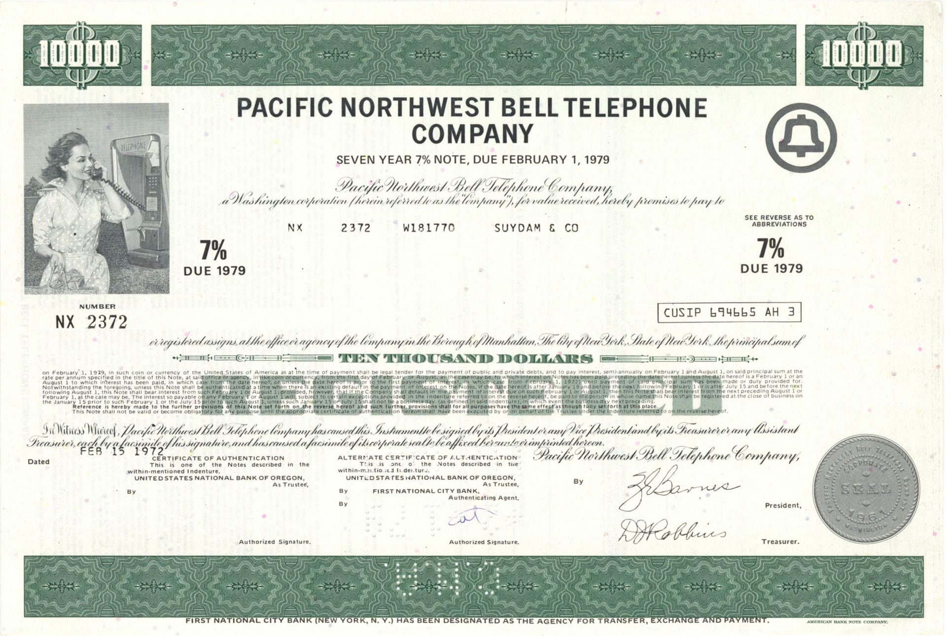 Pacific Northwest Bell Telephone Co. - 1972-1979 dated $10,000 or $5,000 Bond