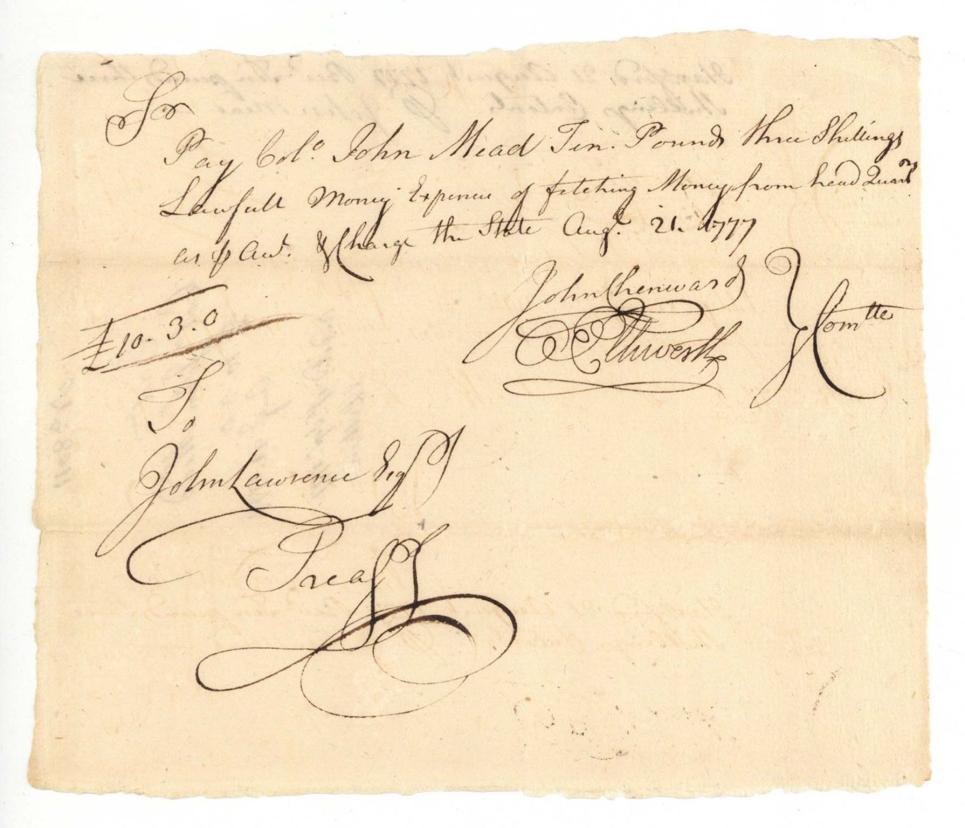 Oliver Ellsworth and Col. John Mead signed Revolutionary War Pay Order dated 1777 - Connecticut Revolutionary War Bonds, etc.
