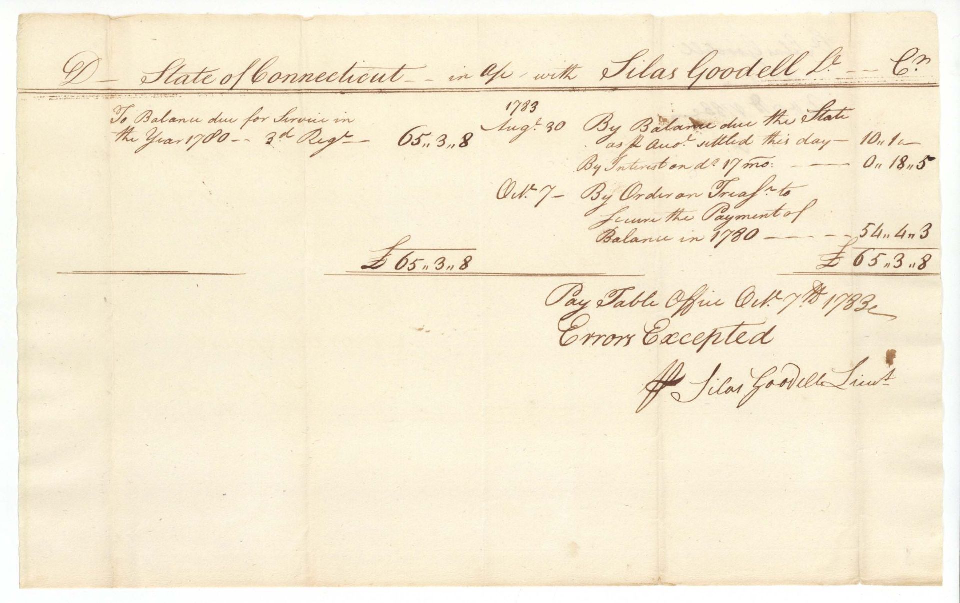 Inv# CT1178State of Connecticut Payment Sheet for services rendered between 1780-1783. Rare!