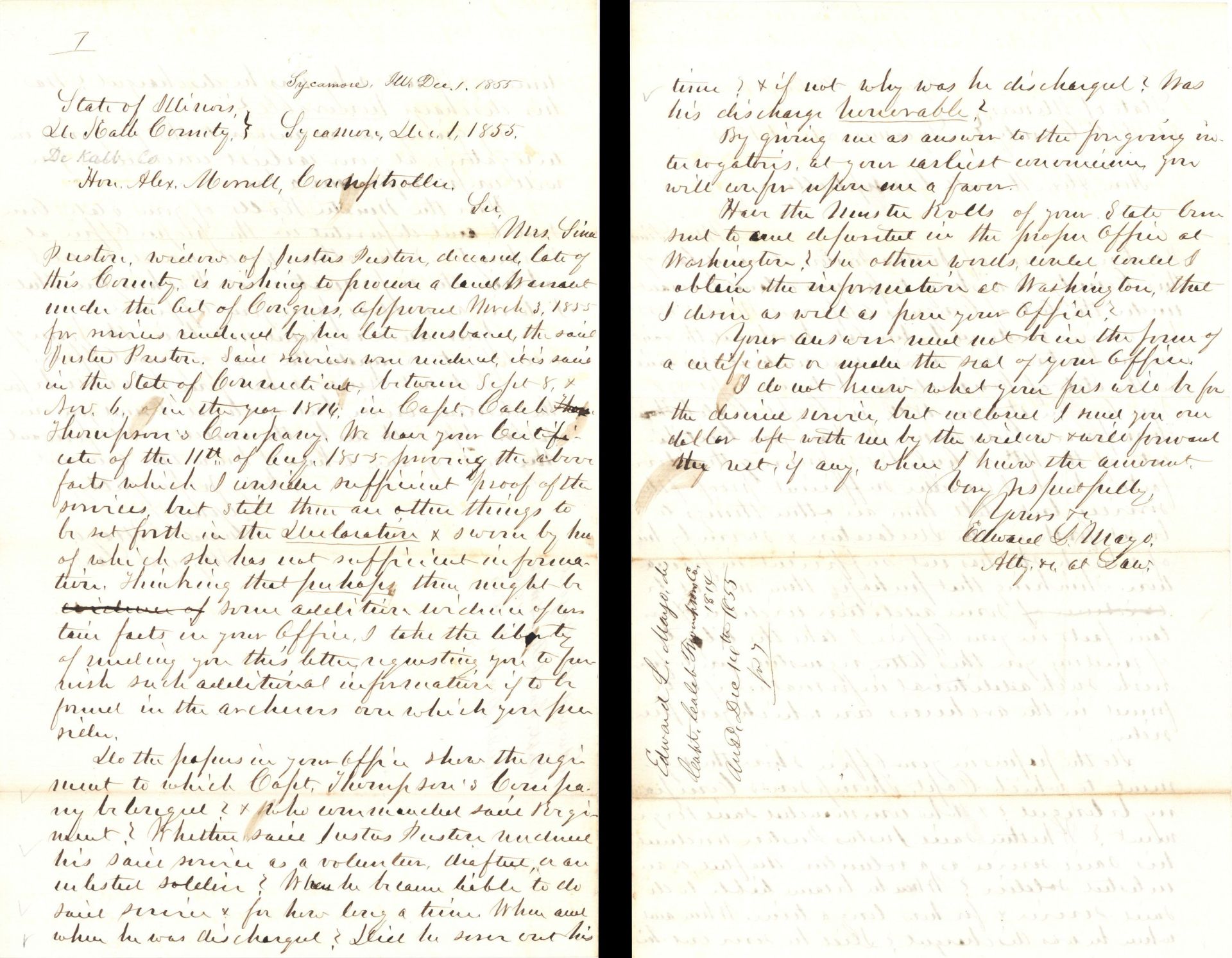 Letter regarding Revolutionary War Pension for Captain Caleb Thompson.