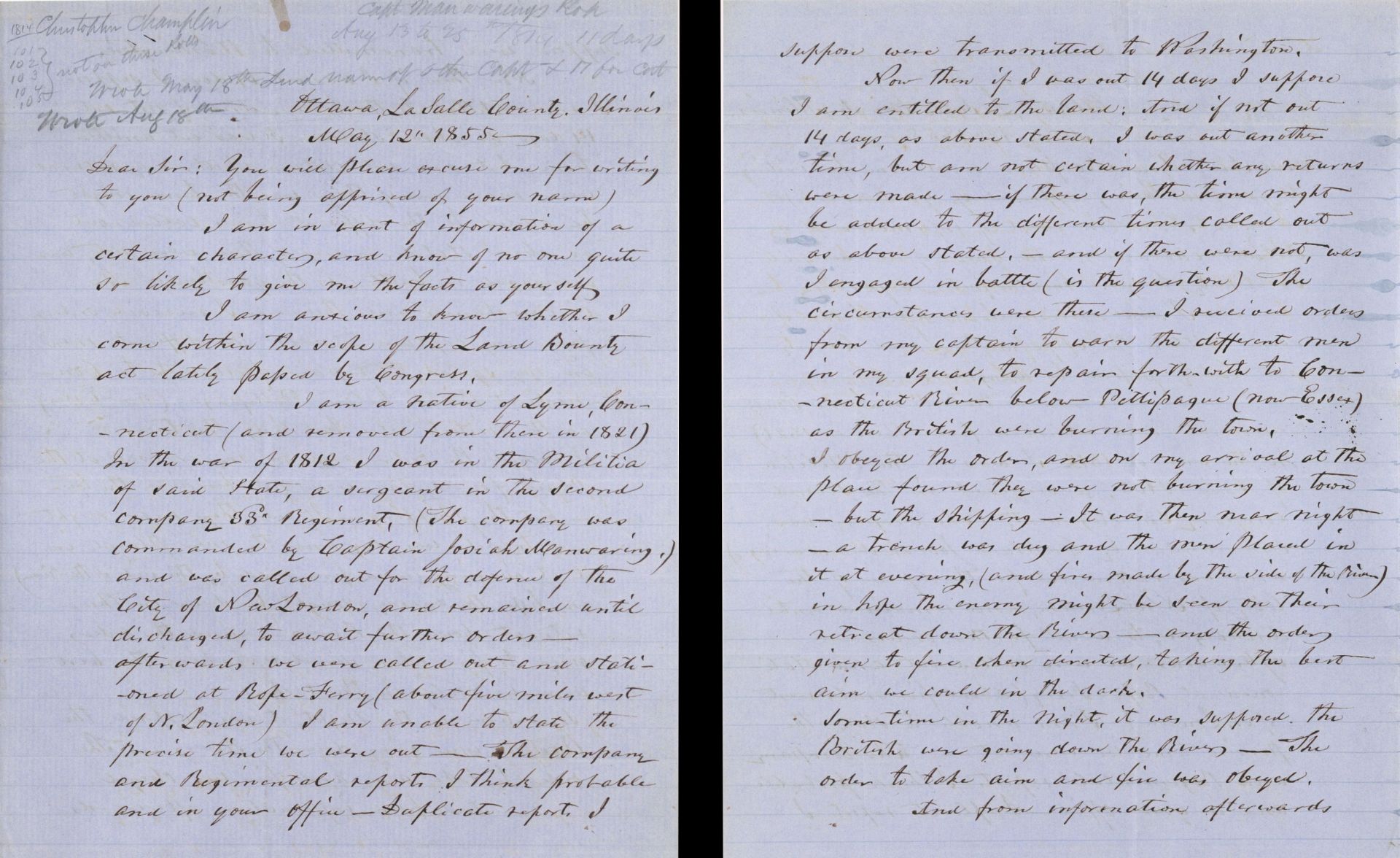 Revolutionary War Pension for Christopher Champlin - Connecticut - 1855 dated American Revolutionary War