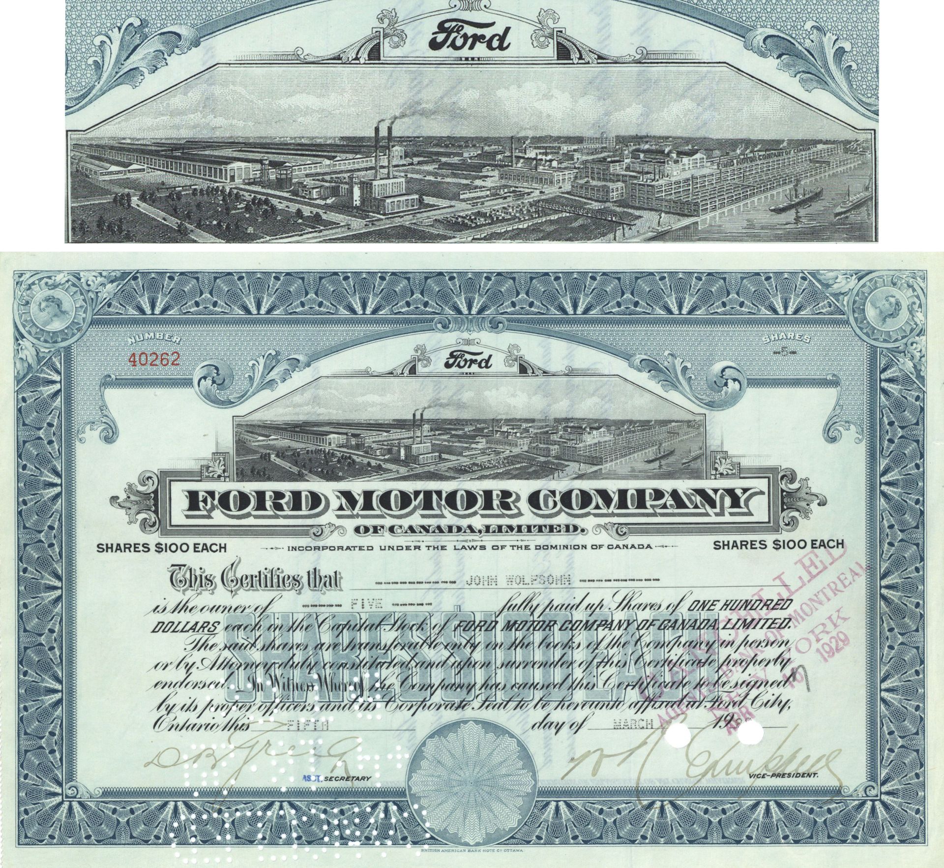 Ford Motor Co. of Canada, Limited - 1928 dated Canadian Automobile Stock Certificate