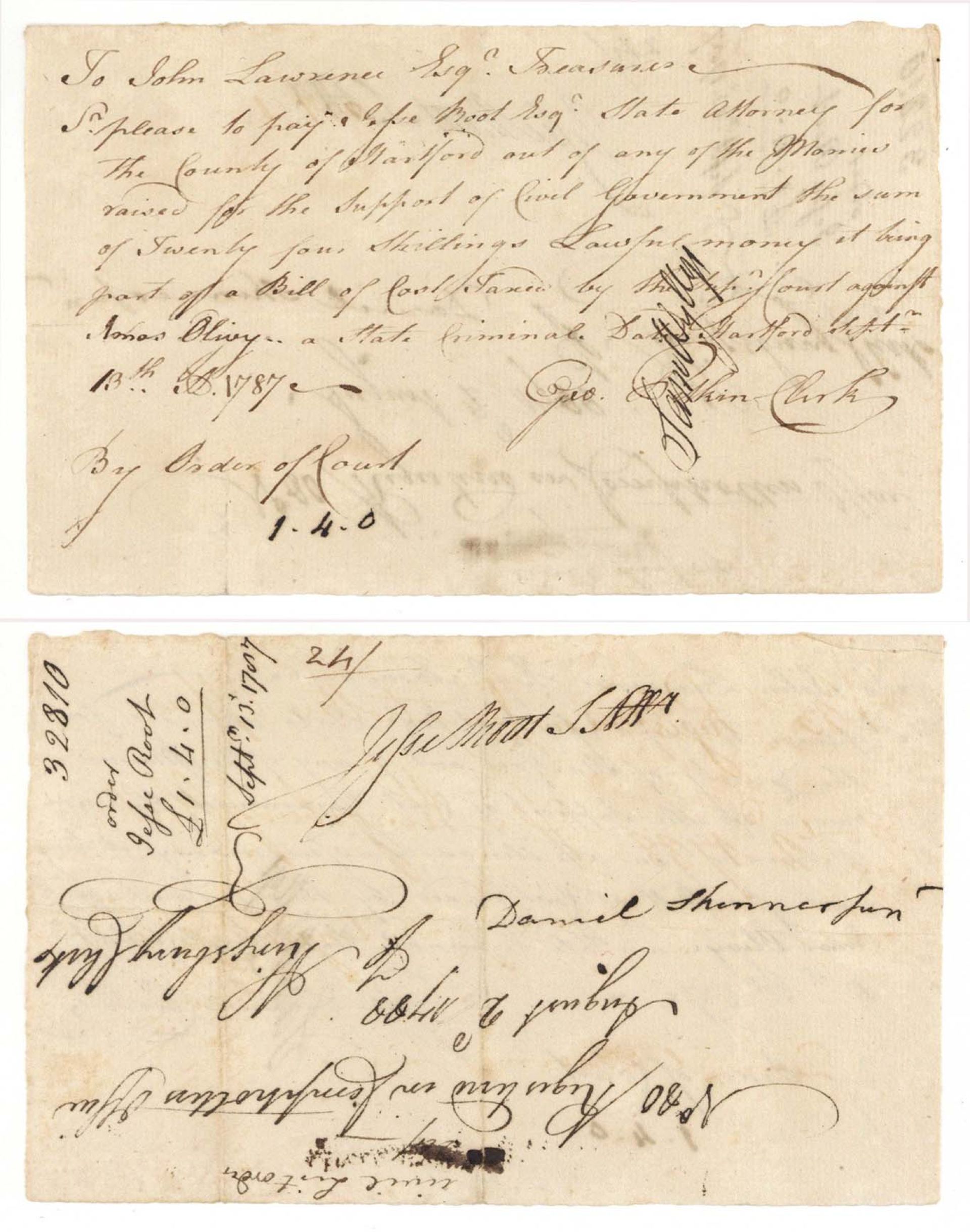 1787 dated Pay Table Document Signed by Jesse Root - 1787 dated Autograph