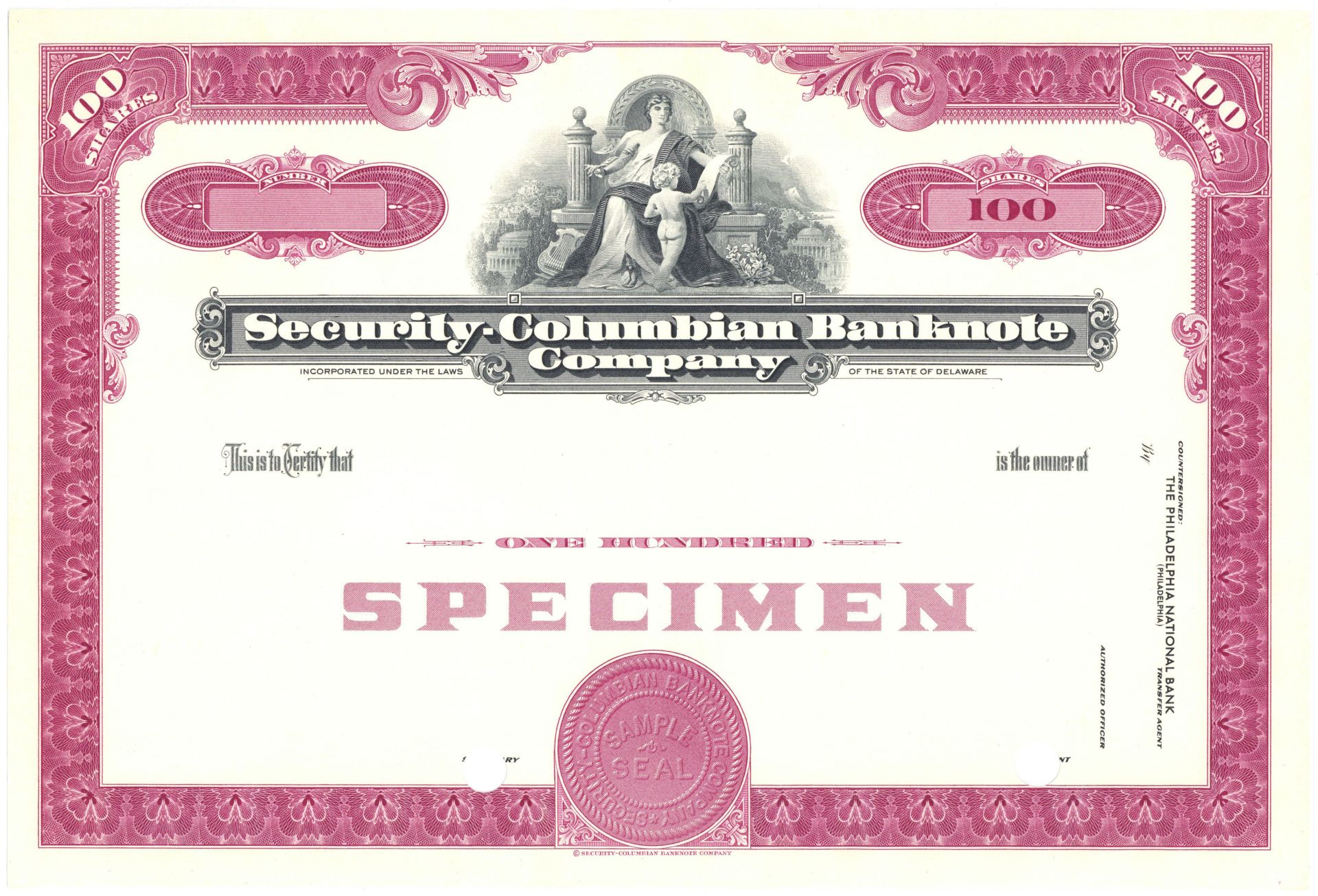 Security-Columbian Banknote Co. - circa 1970's Specimen Stock Certificate - Vertical Fold