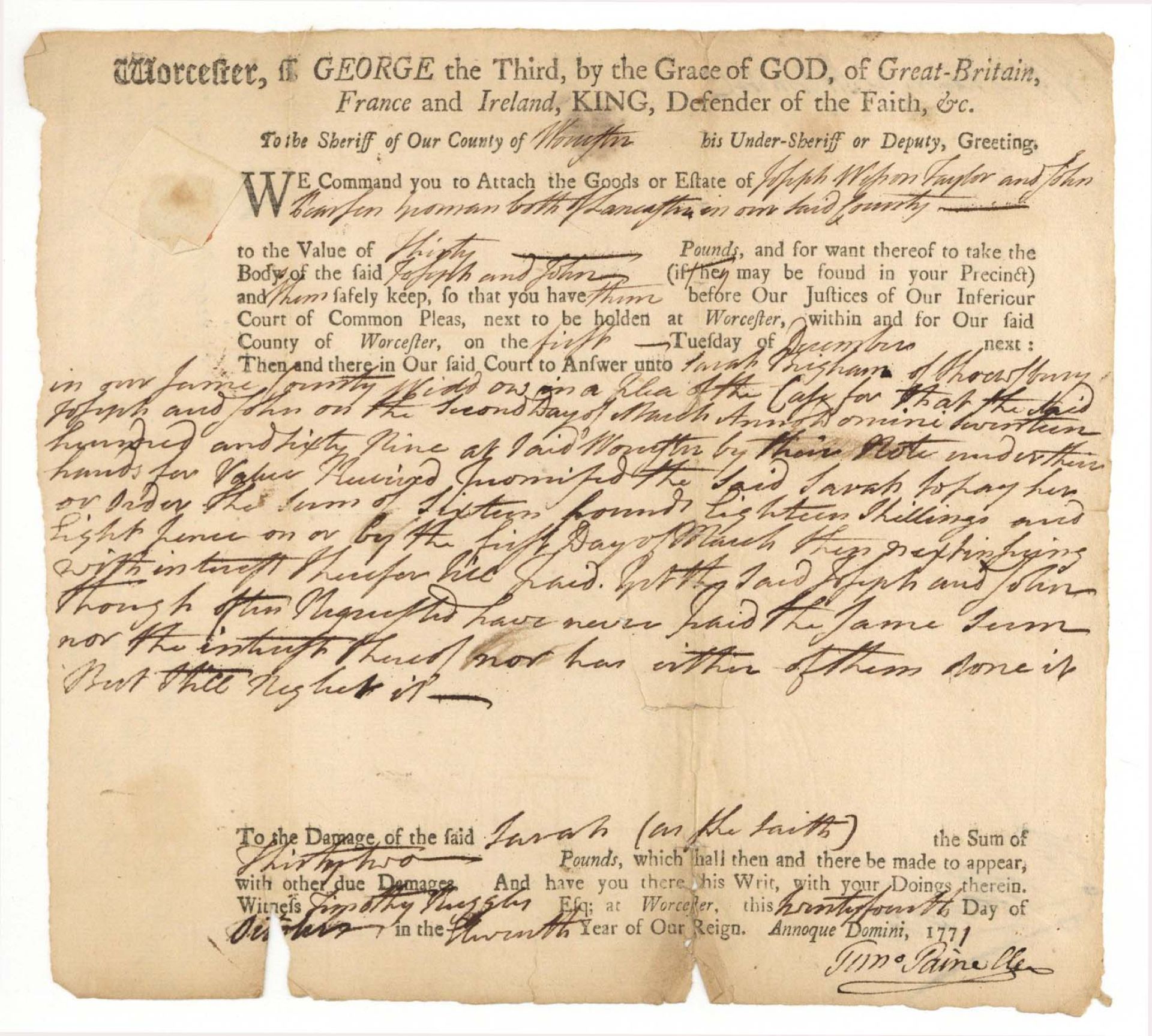 1771 dated Court Document - Early Massachusetts Document - Americana