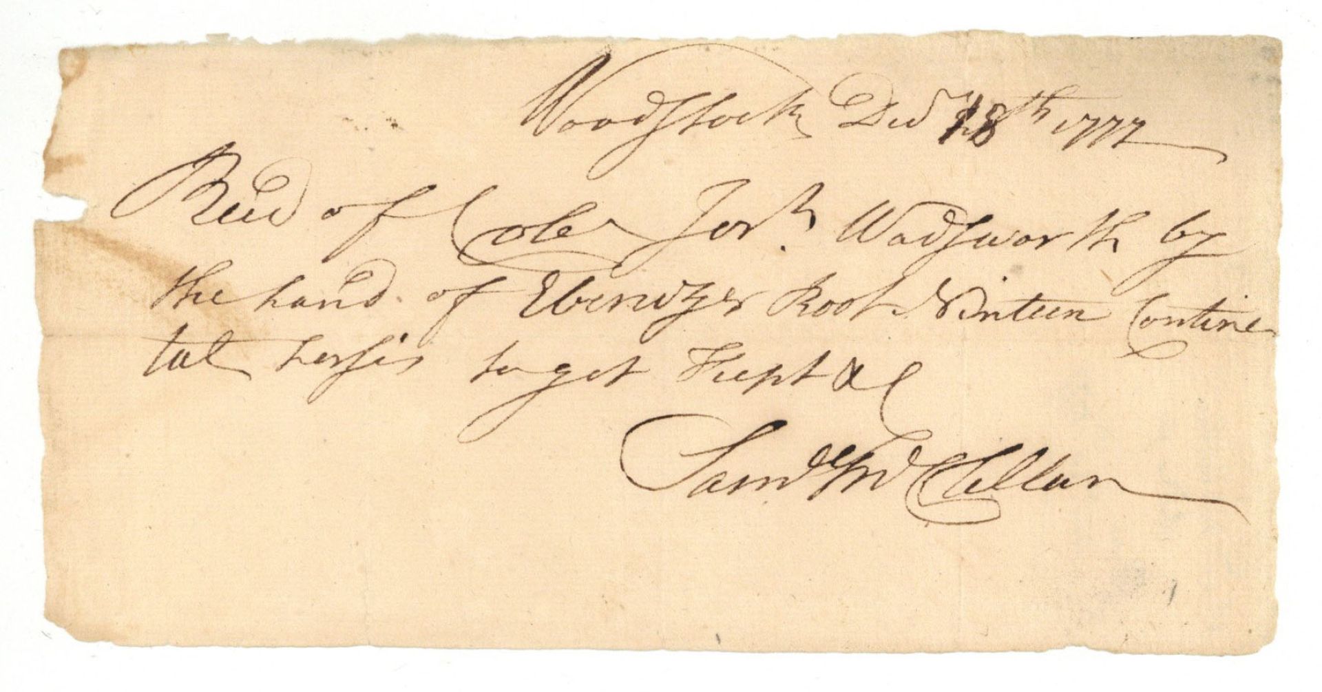 1777 dated Receipt - American Revolutionary War Document