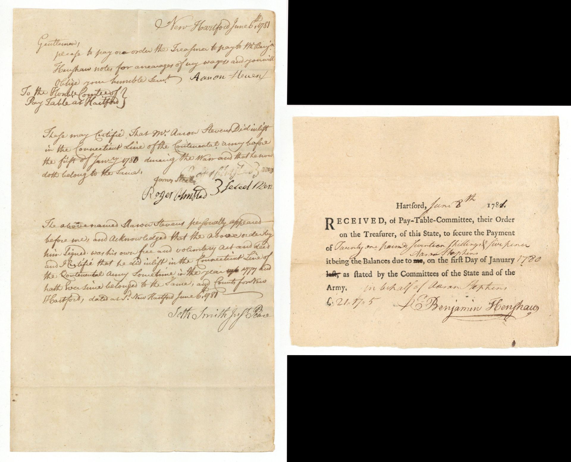 Handwritten pay order for wages and Receipt of Pay-Table-Committee. Hartford, Connecticut. The pair!