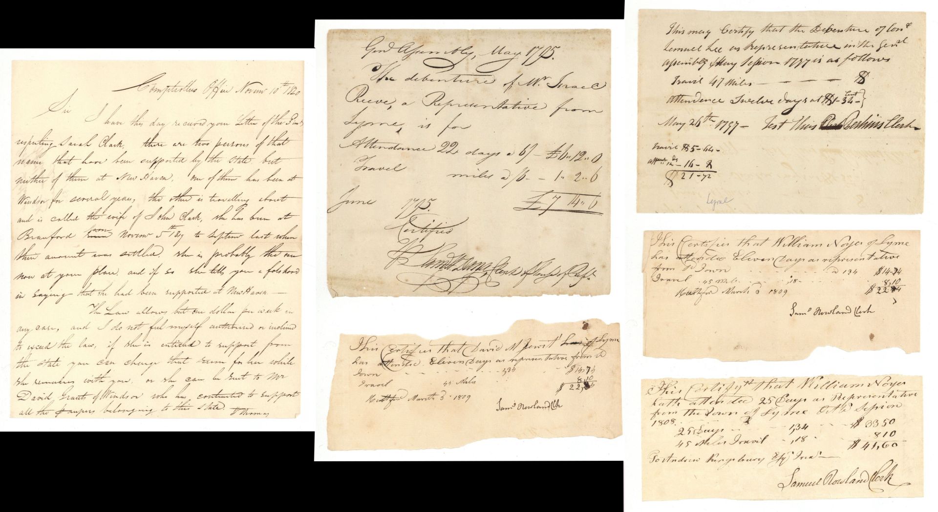 23 Documents, letters and receipts. All Lyme, Connecticut. 6 of 23 shown.