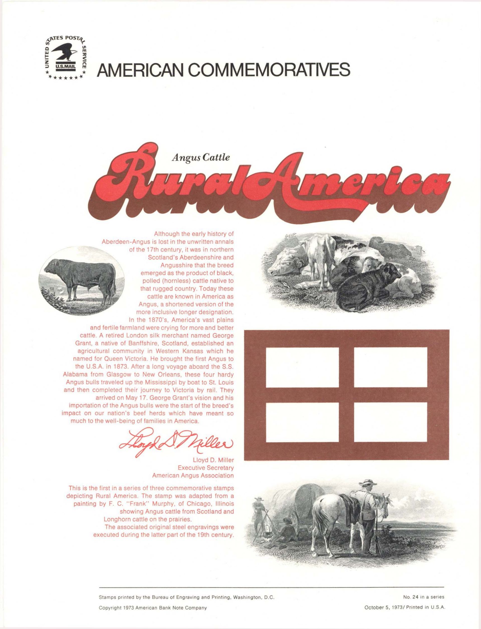 American Bank Note Company American Commemoratives for Angus Cattle Rural America by the United States Postal Service.