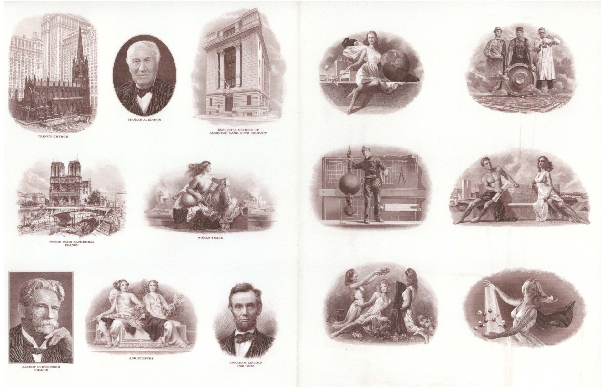 Inv# ABN1137Folder printed on vellum of American Bank Note Company vignettes.