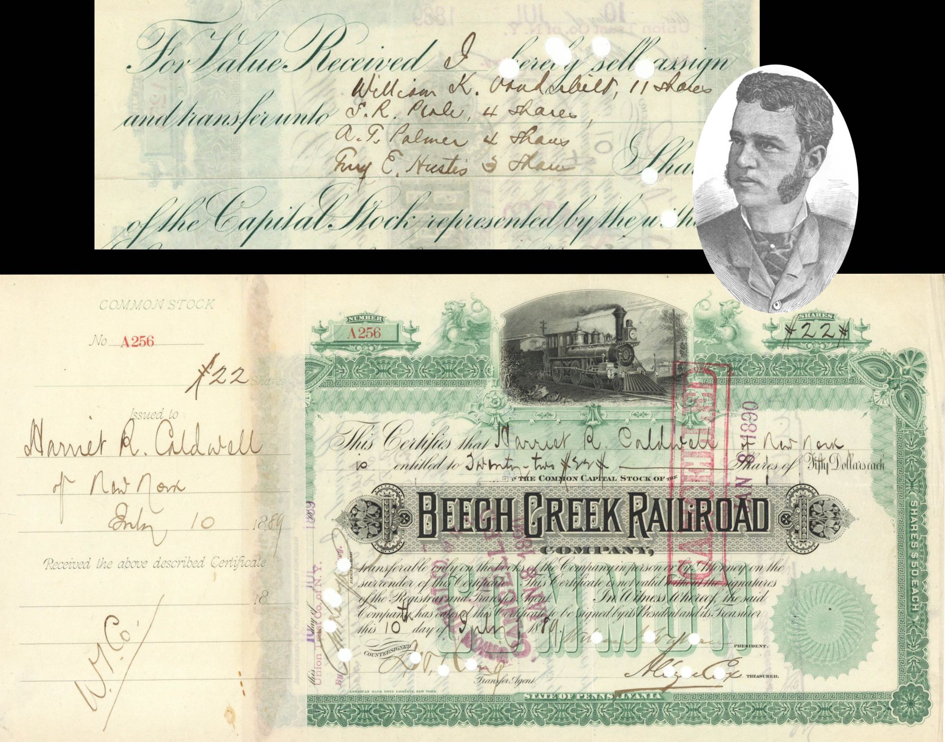 Beech Creek Railroad Co. transferred to William K Vanderbilt - 1886-1889 dated Stock Certificate