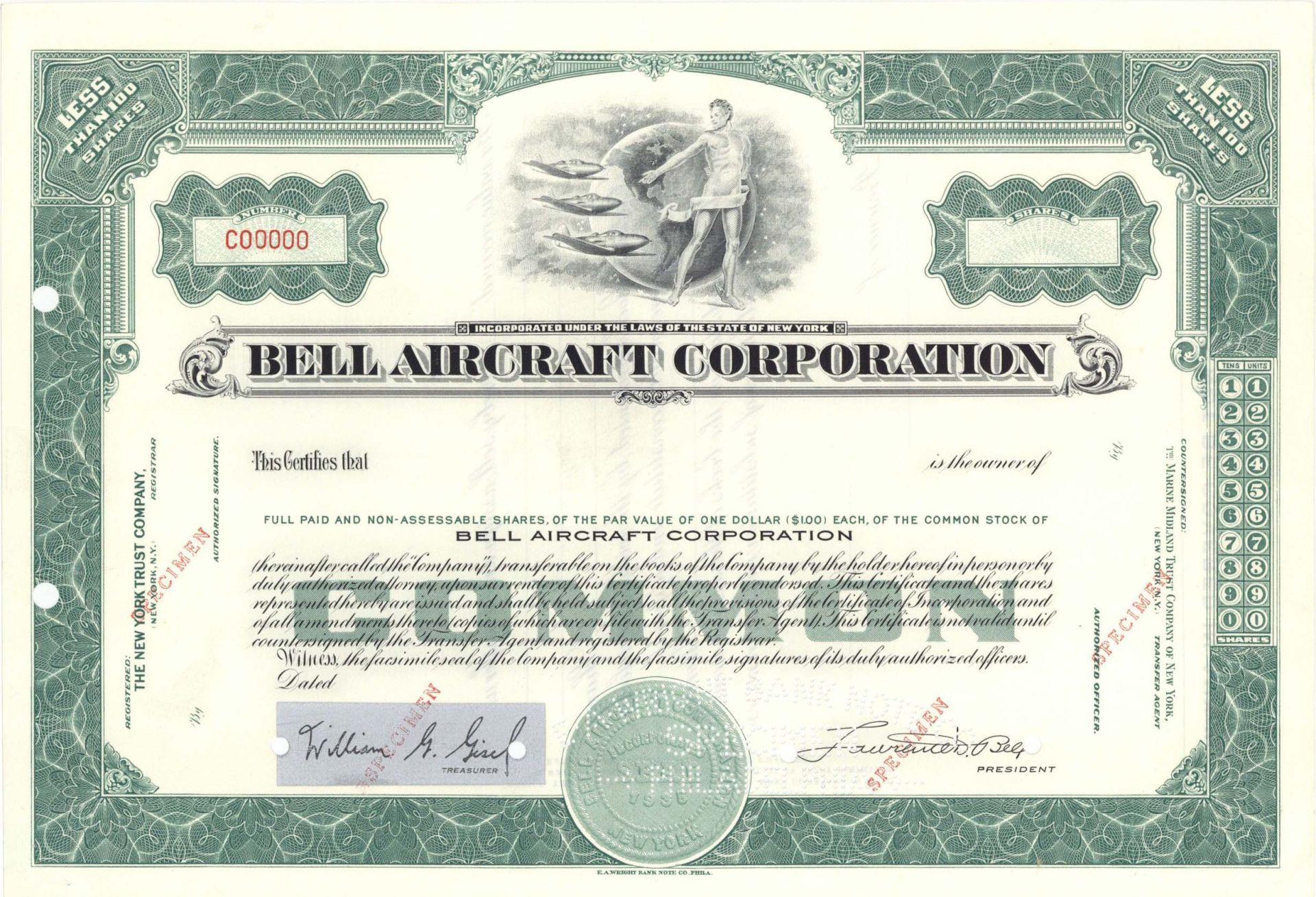 Bell Aircraft Corp. - Specimen Stock Certificate