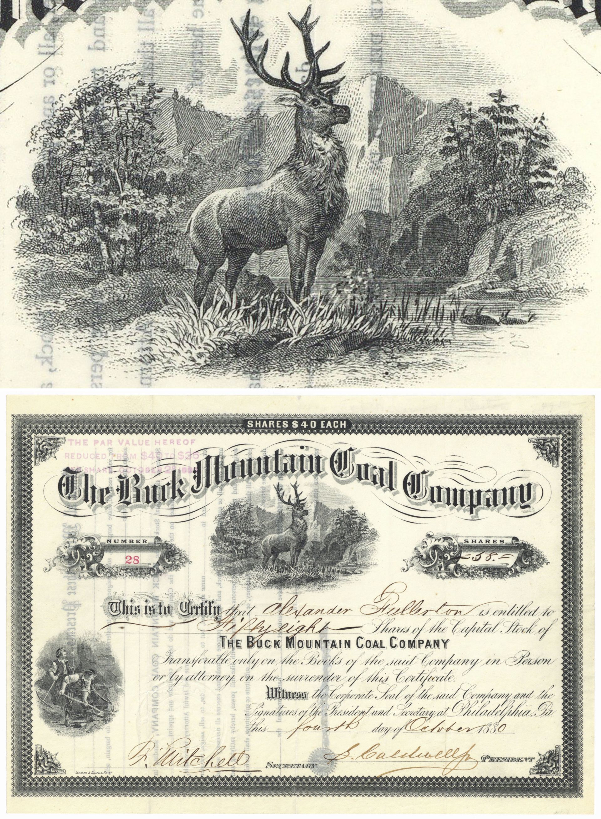 Buck Mountain Coal Co. - 1880 dated Pennsylvania Mining Stock Certificate