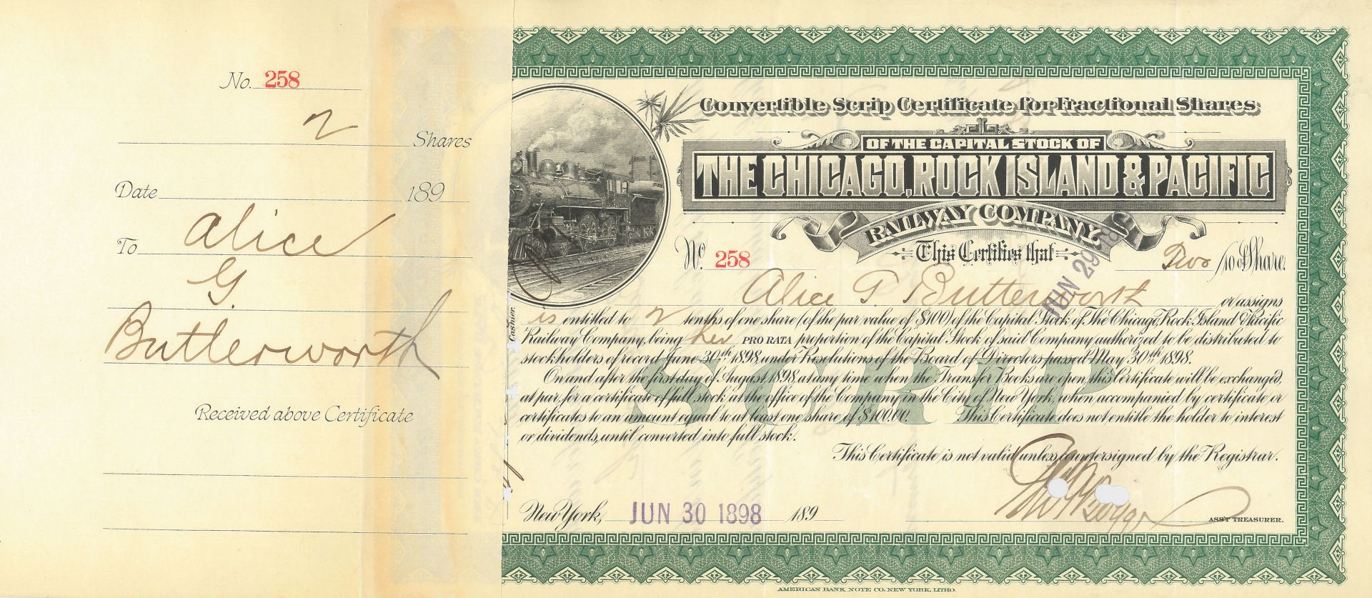 Chicago, Rock Island and Pacific Railway - Stock Certificate