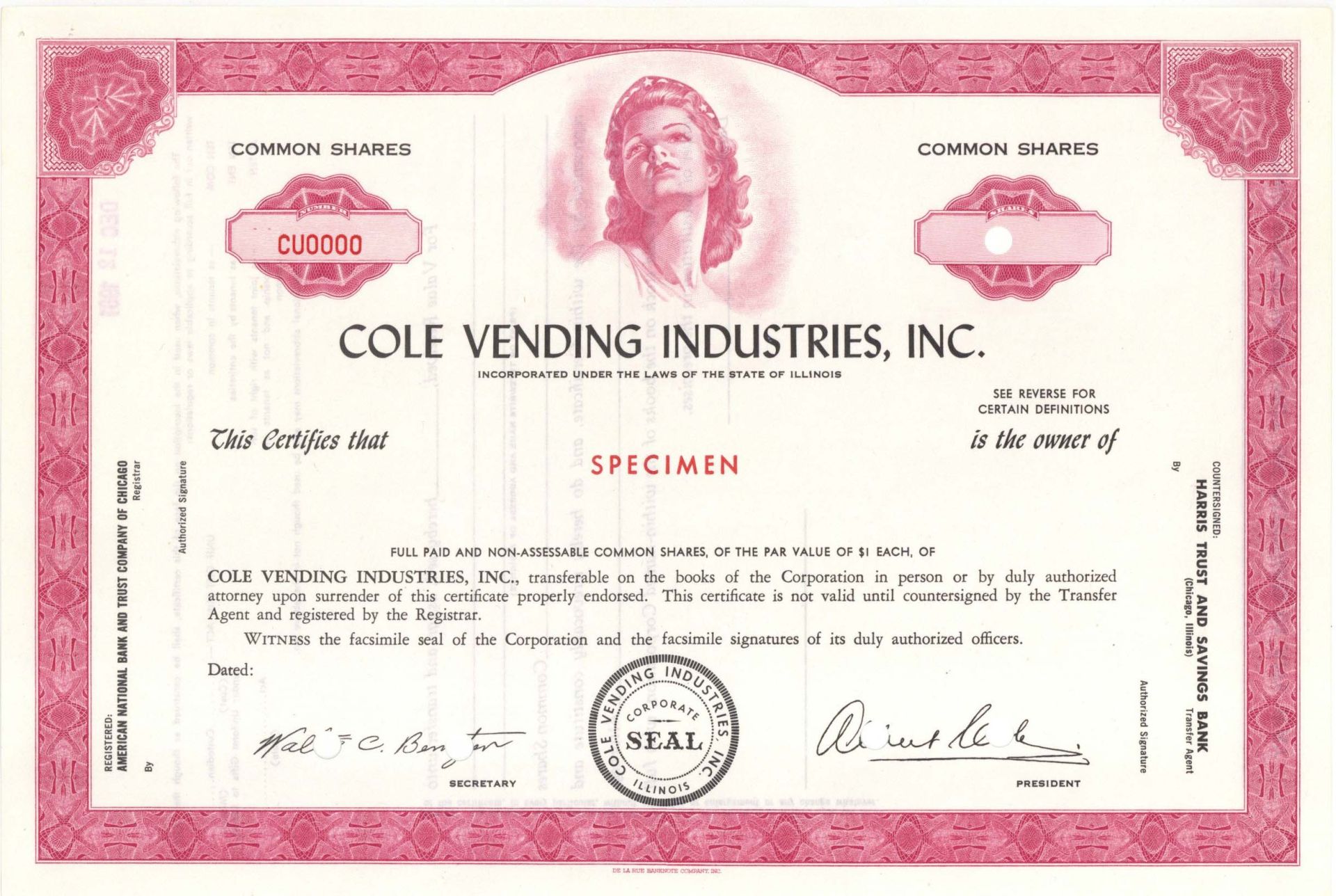 Cole Vending Industries, Inc. - Specimen Stock Certificate