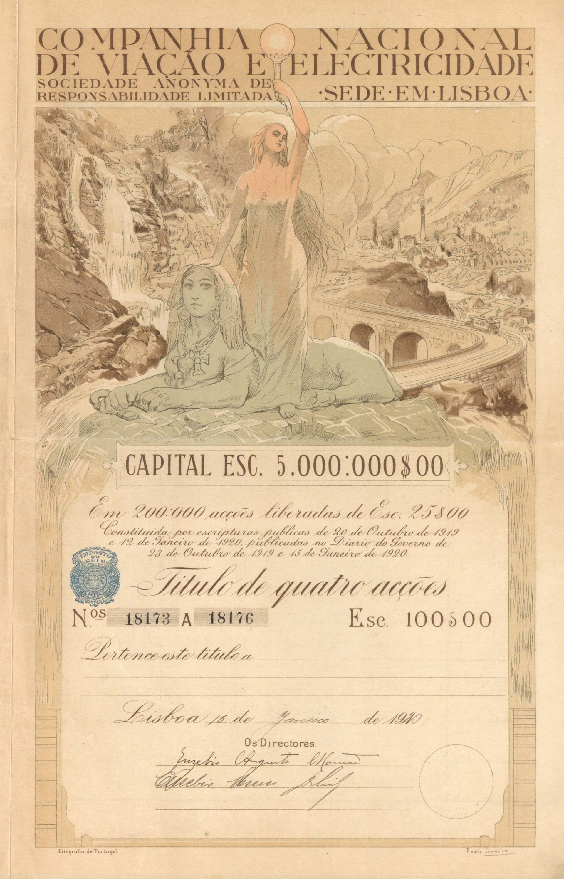 Companhia Nacional De Viacao Et Electricidade - 1920 dated Stock Certificate