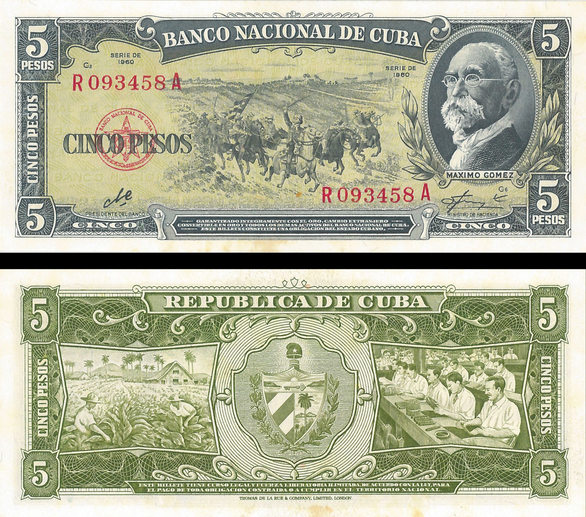 Cuba - 5 Pesos - P-91c - 1960 dated Foreign Paper Money