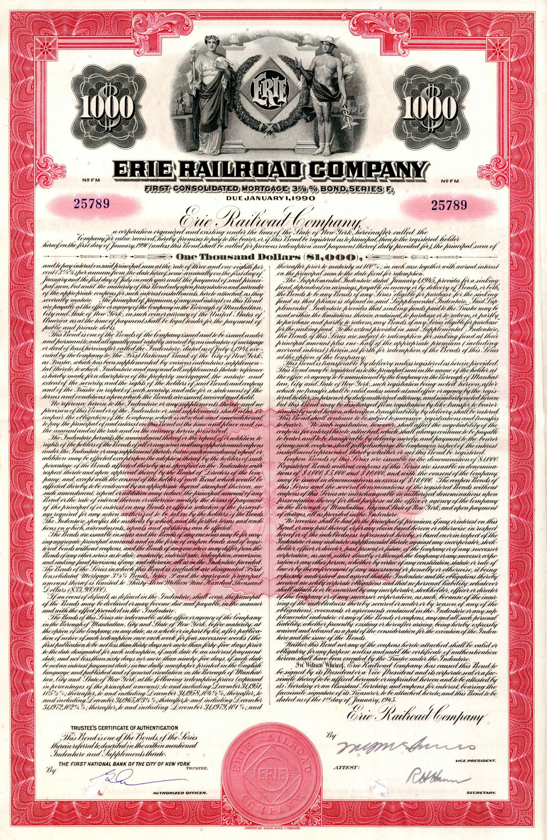 Erie Railroad Co. - 1940's-70's dated Railway Various Denominations Bond