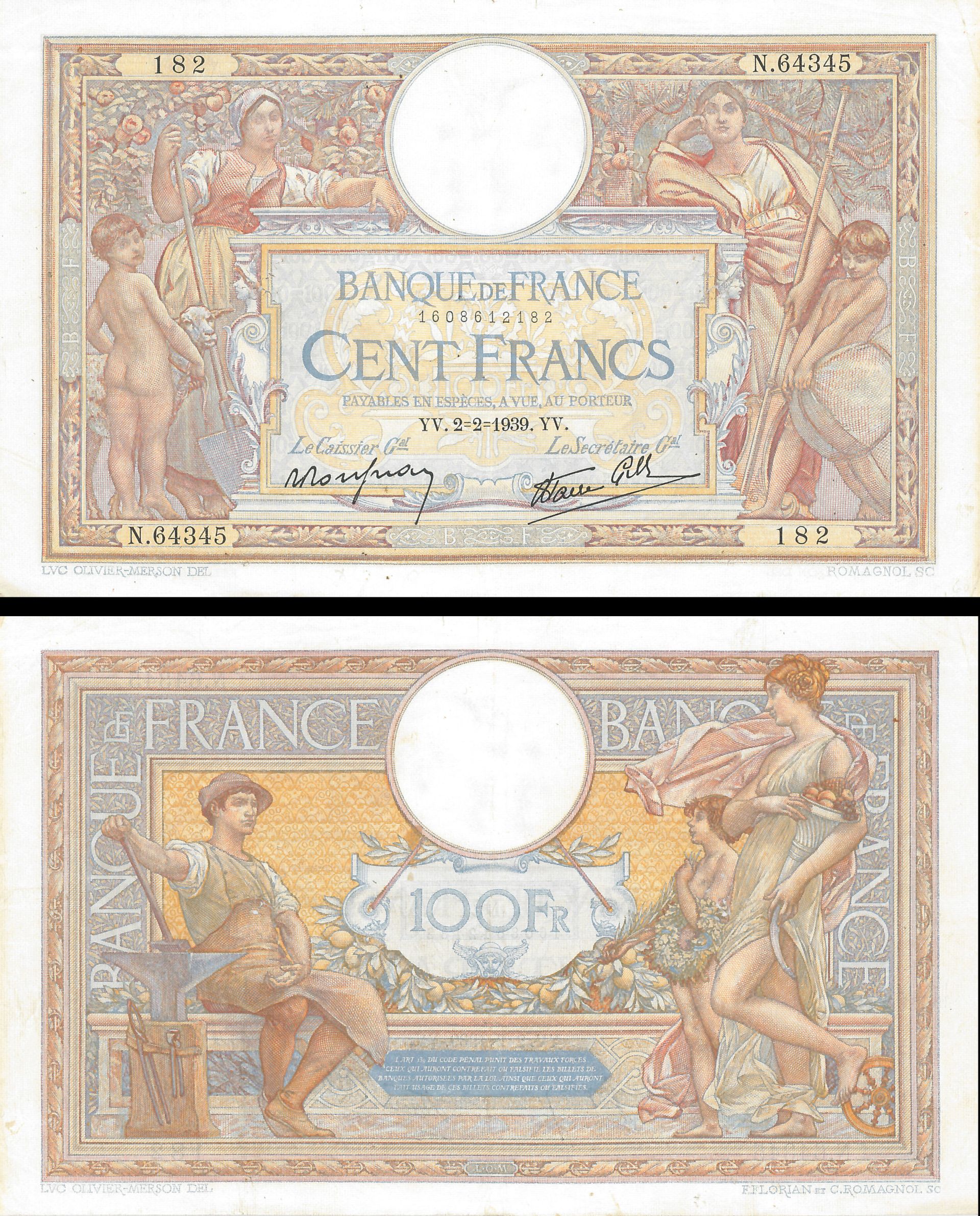 France - 100 Francs - P-86b - 1939 dated Foreign Paper Money