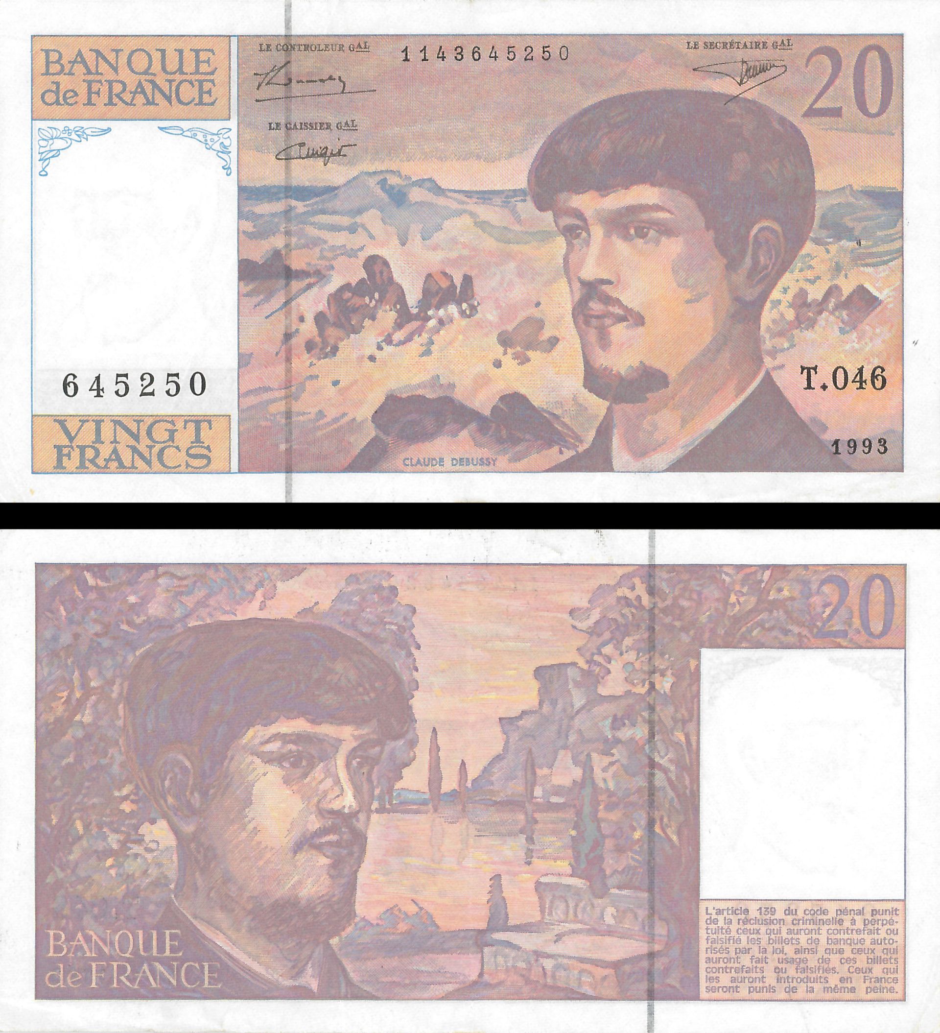 France - 20 Francs - P-151g - 1993 dated Foreign Paper Money