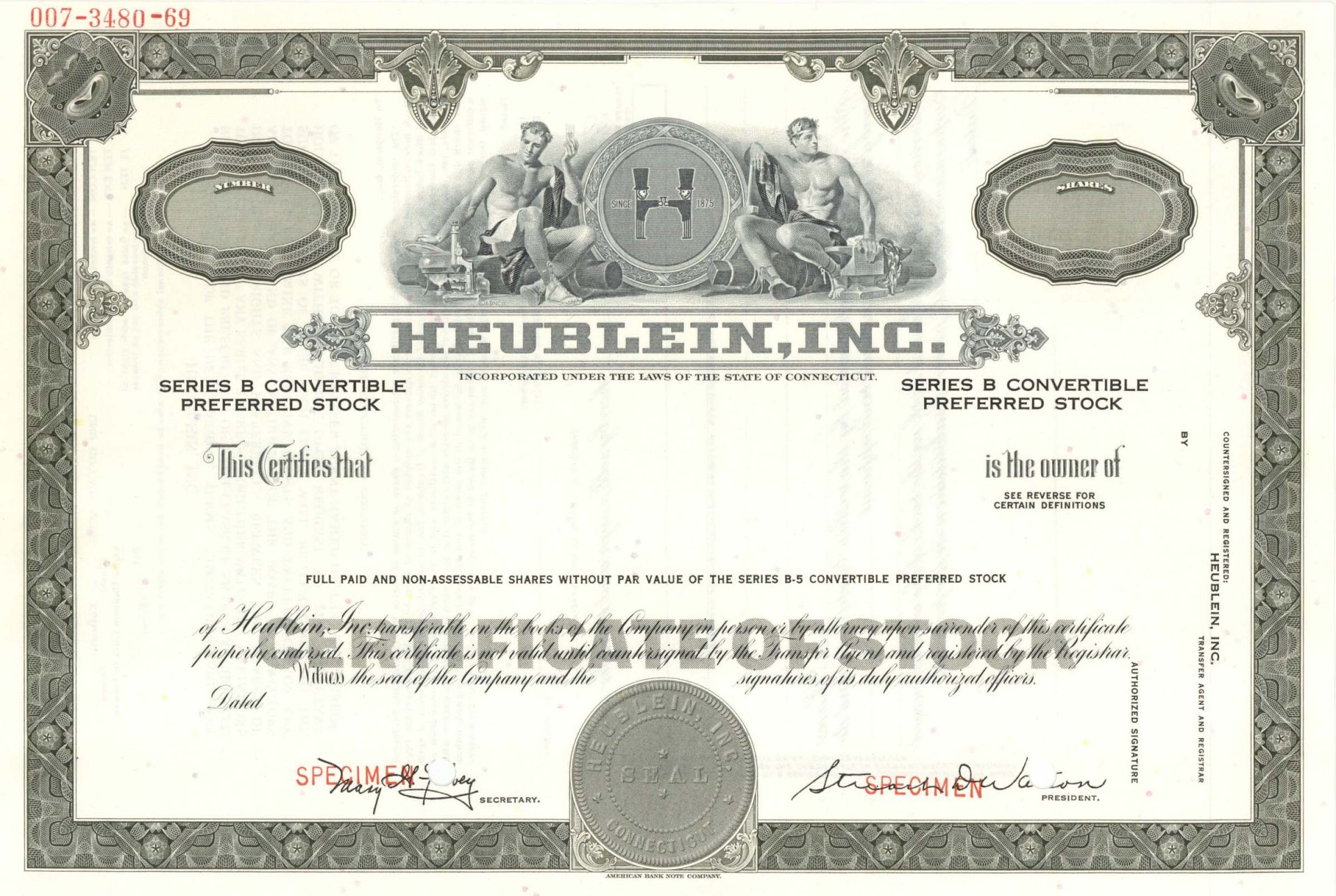 Stock and Bond Specimens are made and usually retained by a printer as a record of the contract with a client, generally with manuscript contract notes such as the quantity printed. Specimens are sometimes produced for use by the printing company's sales team as examples of the firm’s products. These are usually marked "Specimen" and have no serial numbers.